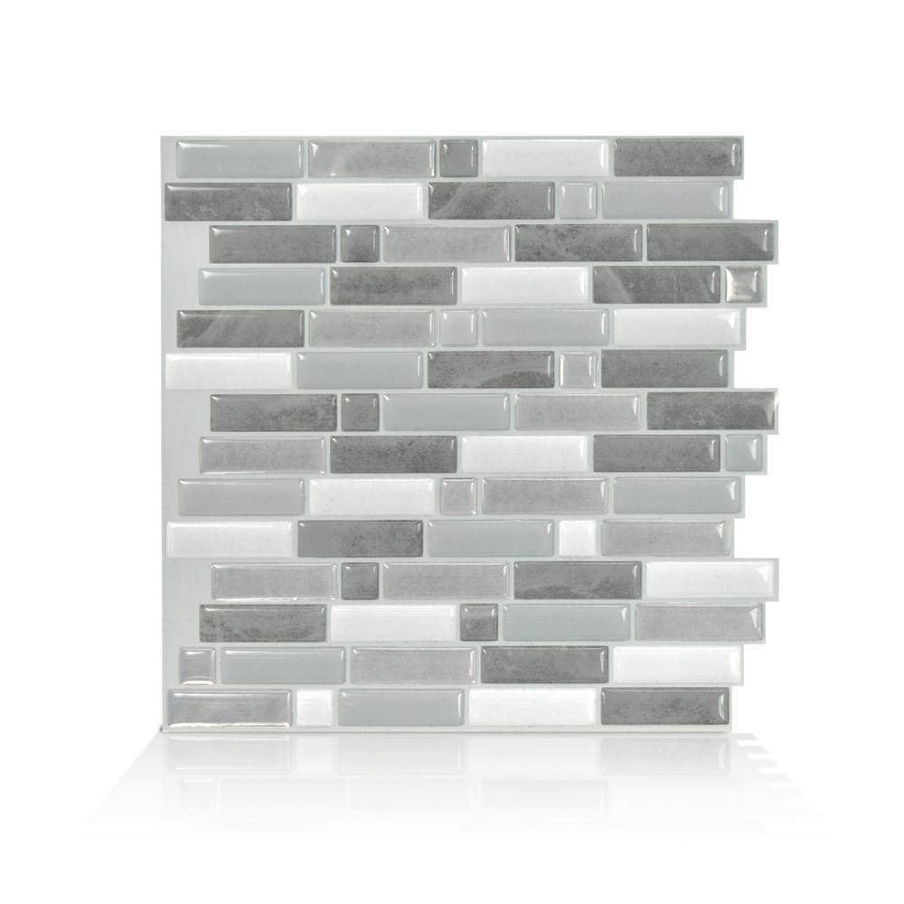 Crescendo Agati 9.73 in. W x 9.36 in. H Gray Peel and Stick Decorative Mosaic Wall Tile Backsplash (4-Pack)