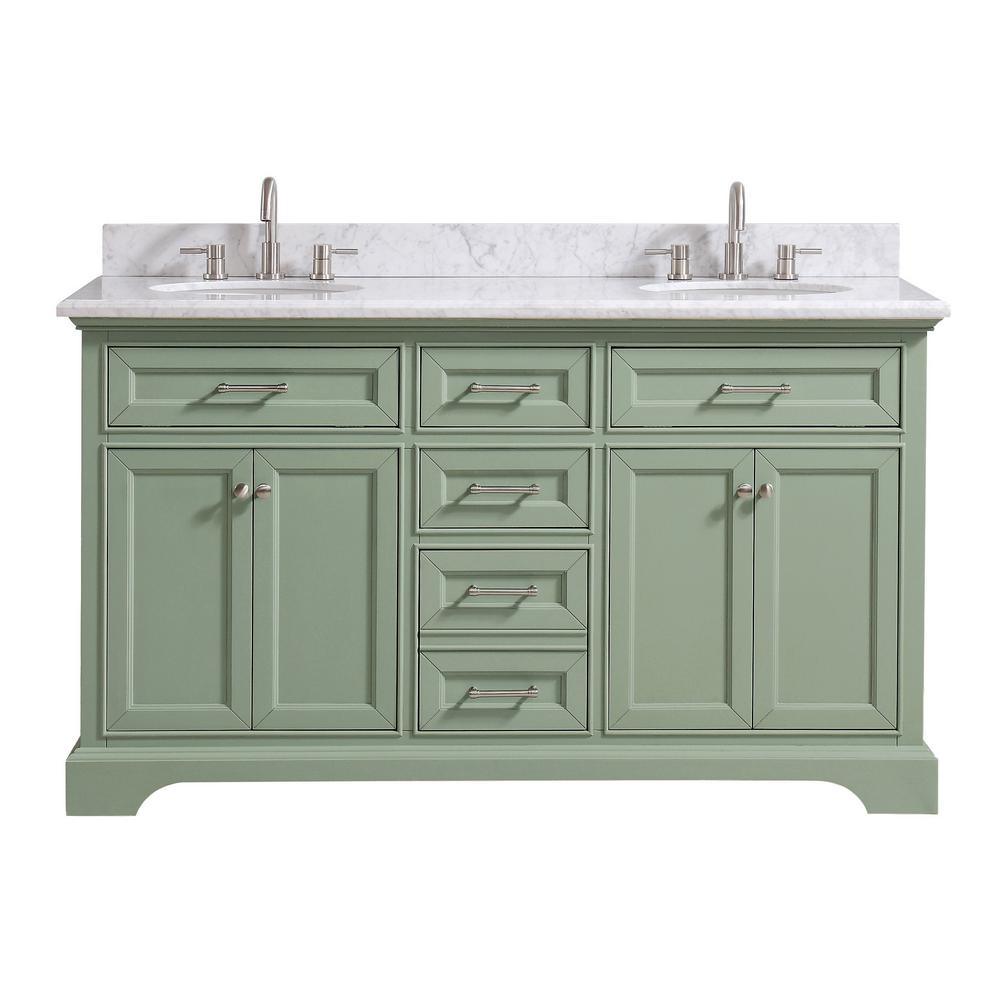 Windlowe 61 in. W x 22 in. D x 35 in. H Bath Vanity in Green with Carrera Marble Vanity Top in White with White Sink