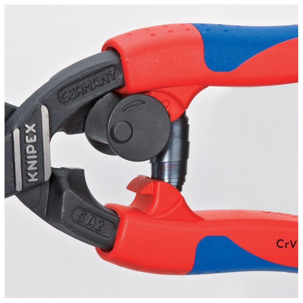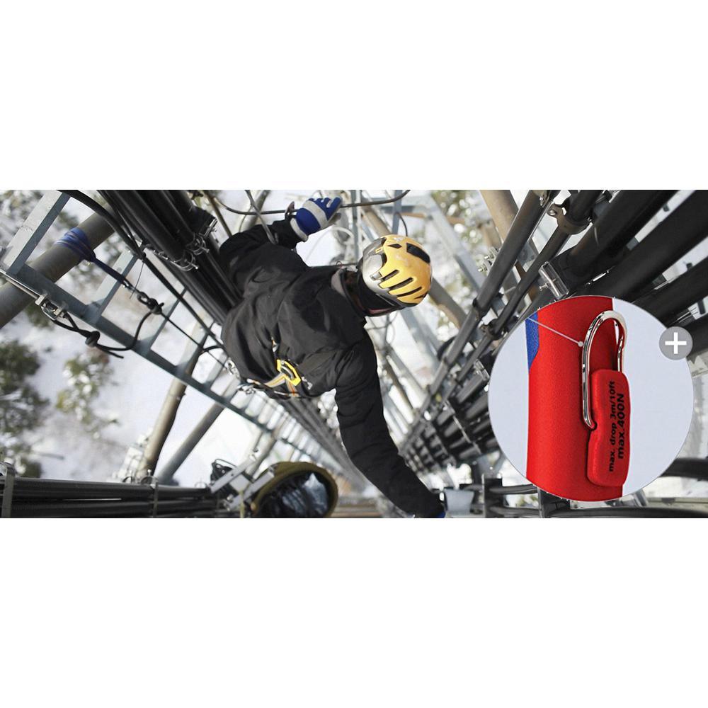 KNIPEX Tools is the worlds largest manufacturer of professional pliers since 1882. KNIPEX Pliers, Cutters, Insulated Tools and other products have been the tools of choice for Professional Tradesmen and end users who are serious about their hand tools and demand industrial quality. KNIPEX Tools are made from start to finish utilizing the highest quality materials. Based in Germany, KNIPEX Tools are German engineered to produce a tool unmatched in the industry in terms of features, comfort, design and performance. The KNIPEX XL Bolt Cutter is ideal for any professional for a variety of cutting applications. The newly designed lever action mechanism guarantees a heavy-duty lever ratio with low friction. The cutting performance is 30-fold increase to the hand force applied. Blades feature a recess for powerful cutting of large cross-sections as well as very hard materials with a diameter up to 5.2 mm. Tethered tools provide effective protection against accidents caused by falling tools. Flat mounting point does not get in the way during normal work on the ground. Not to be used on a lanyard of 5 ft. or more.