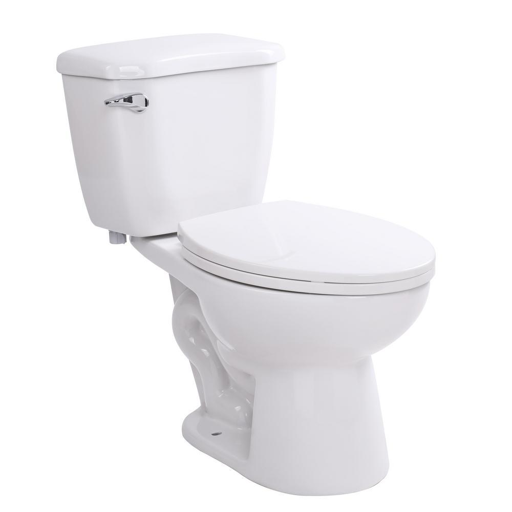 • 2-piece 1.28 GPF single flush elongated toilet in white included