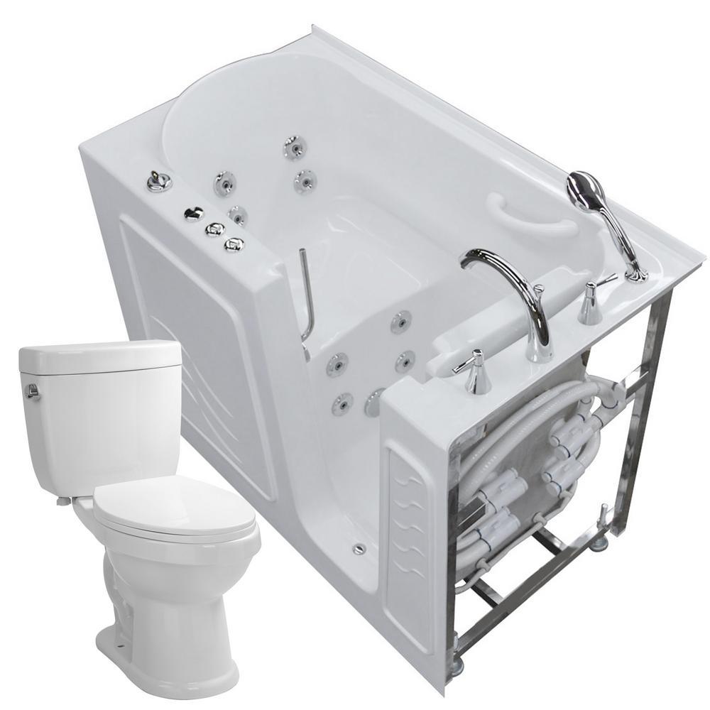 52.75 in. Walk-In Whirlpool Bathtub in White with 1.6 GPF Single Flush Toilet