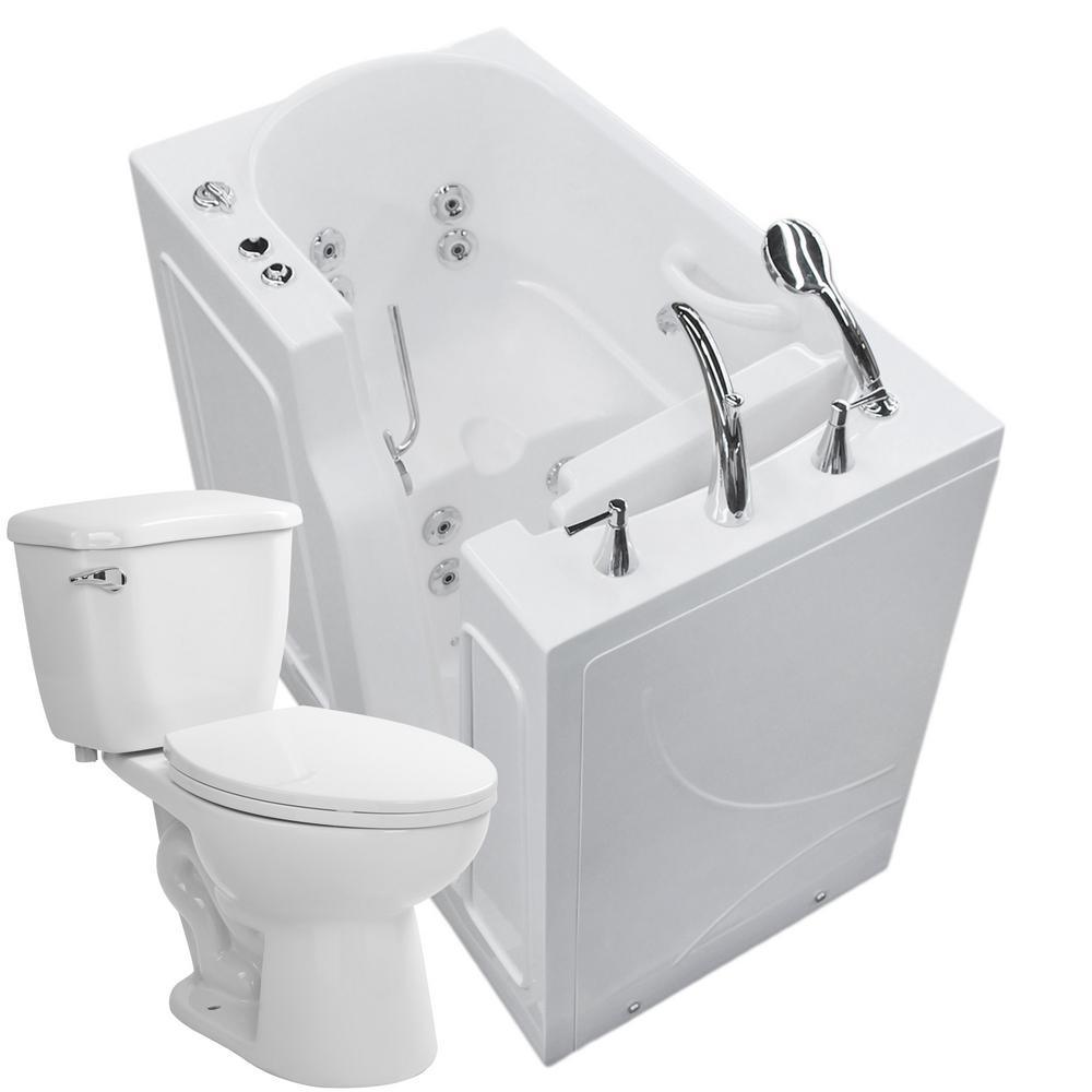52.8 in. Walk-In Whirlpool Bathtub in White with 1.28 GPF Single Flush Toilet