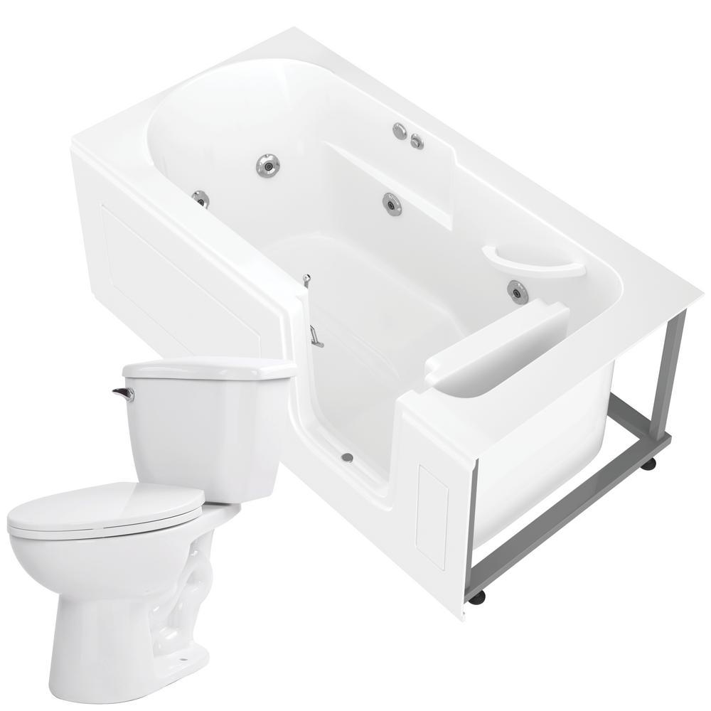Step In 59.6 in. Walk-In Whirlpool Bathtub in White with 1.28 GPF Single Flush Toilet