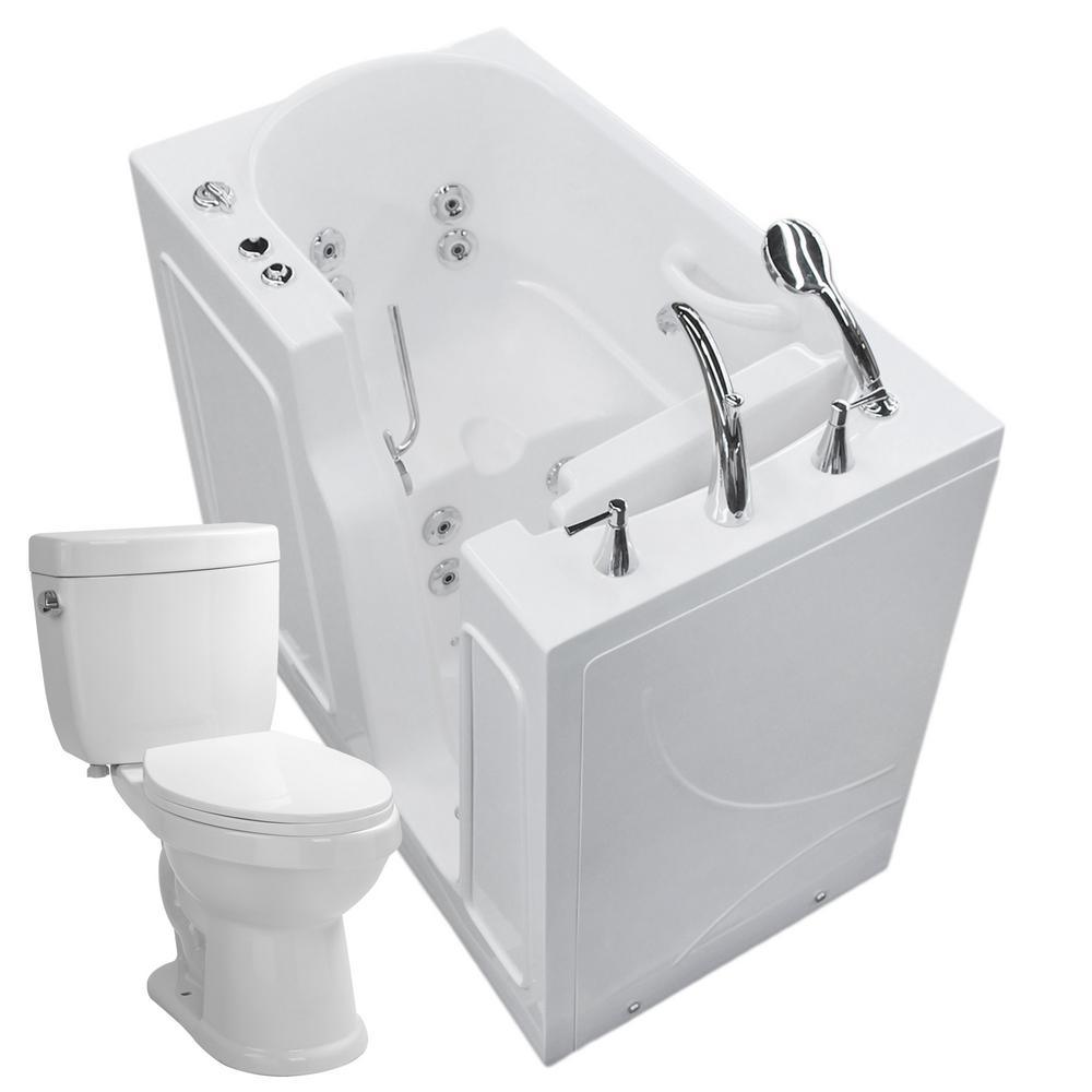 45.75 in. Walk-In Whirlpool Bathtub in White with 1.6 GPF Single Flush Toilet
