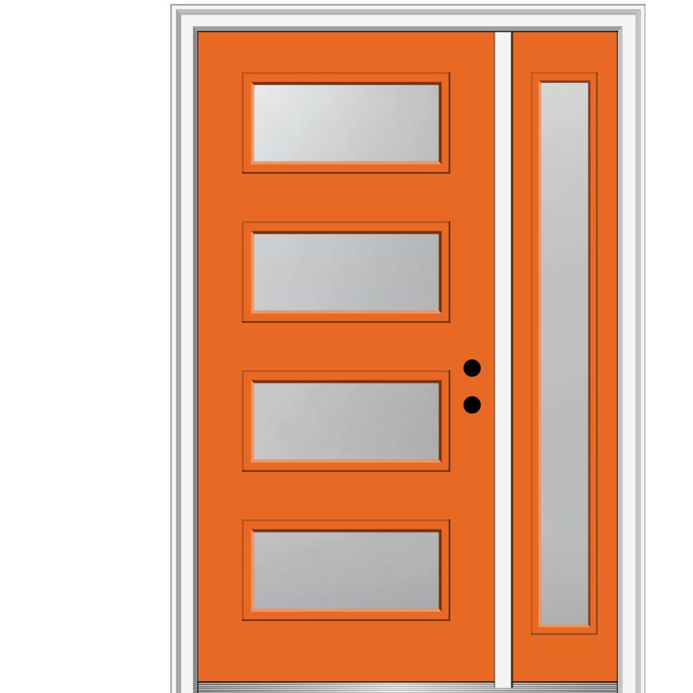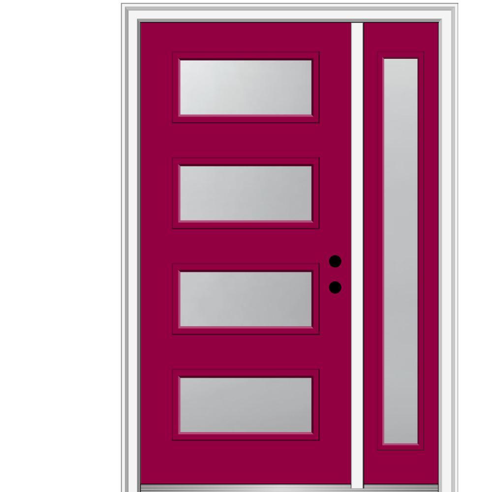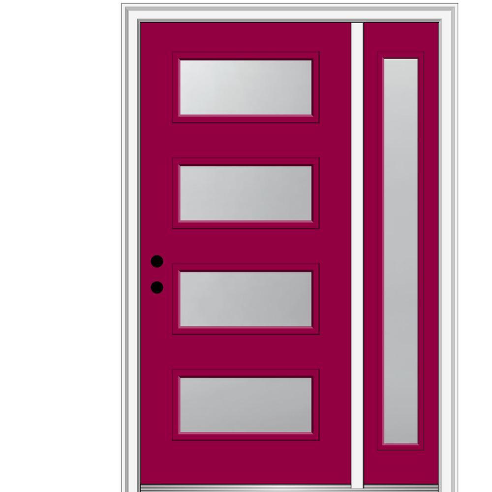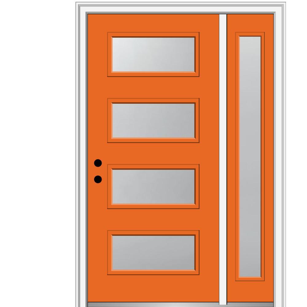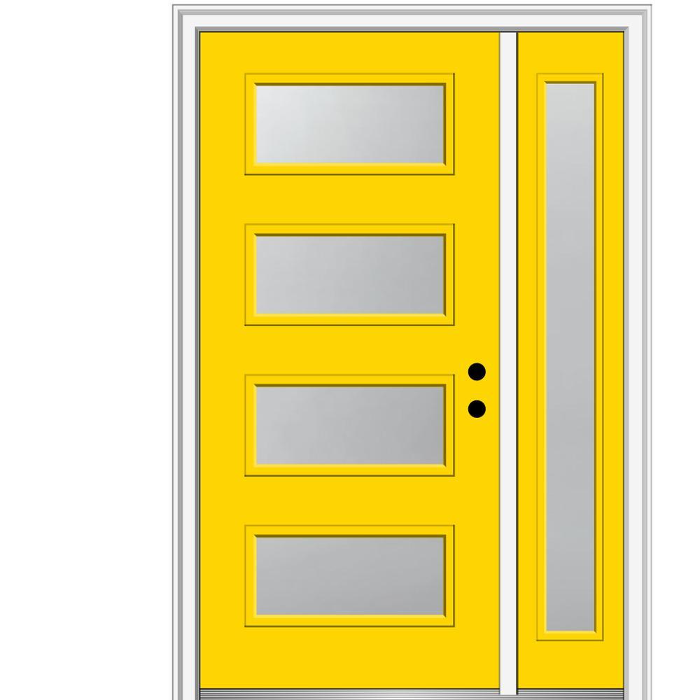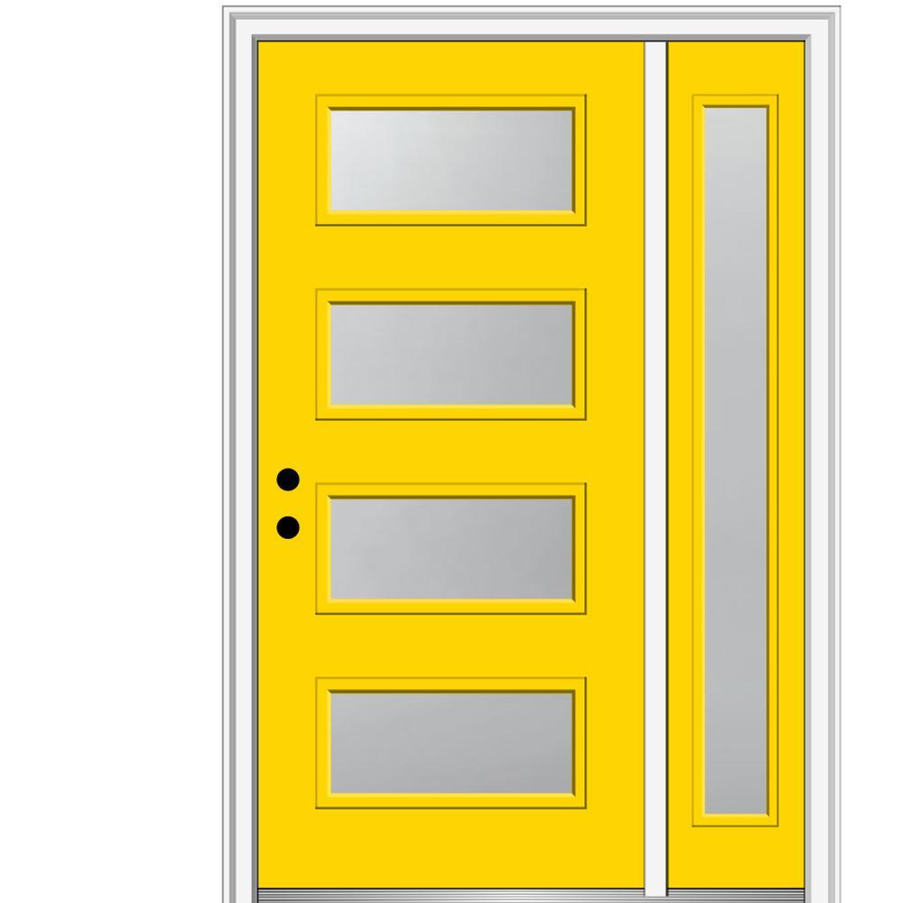 MMI Door Majestic Steel Front Door unit comes with our MSystem 2-year warranty on both the Door Component and the Base Prehung System, as well as a 10-years warranty on the Glass Lite. All of our Majestic Steel doors are galvanized to resist rust and corrosion, are comprised of 24-Gauge, high quality steel with 22-Gauge steel stiles and rails for additional strength and security and come with a one-piece, high density polystyrene core delivering excellent insulation allowing it to meet or exceed current energy code standards. Common door size is 36 in. x 80 in. with 12 in. sidelite. Unit dimension is 51 in. x 81.75 in. The suggested rough opening is 51.5 in. x 82.25 in. This unit comes with a 4-9/16 in. wide primed FrameSaver frame.