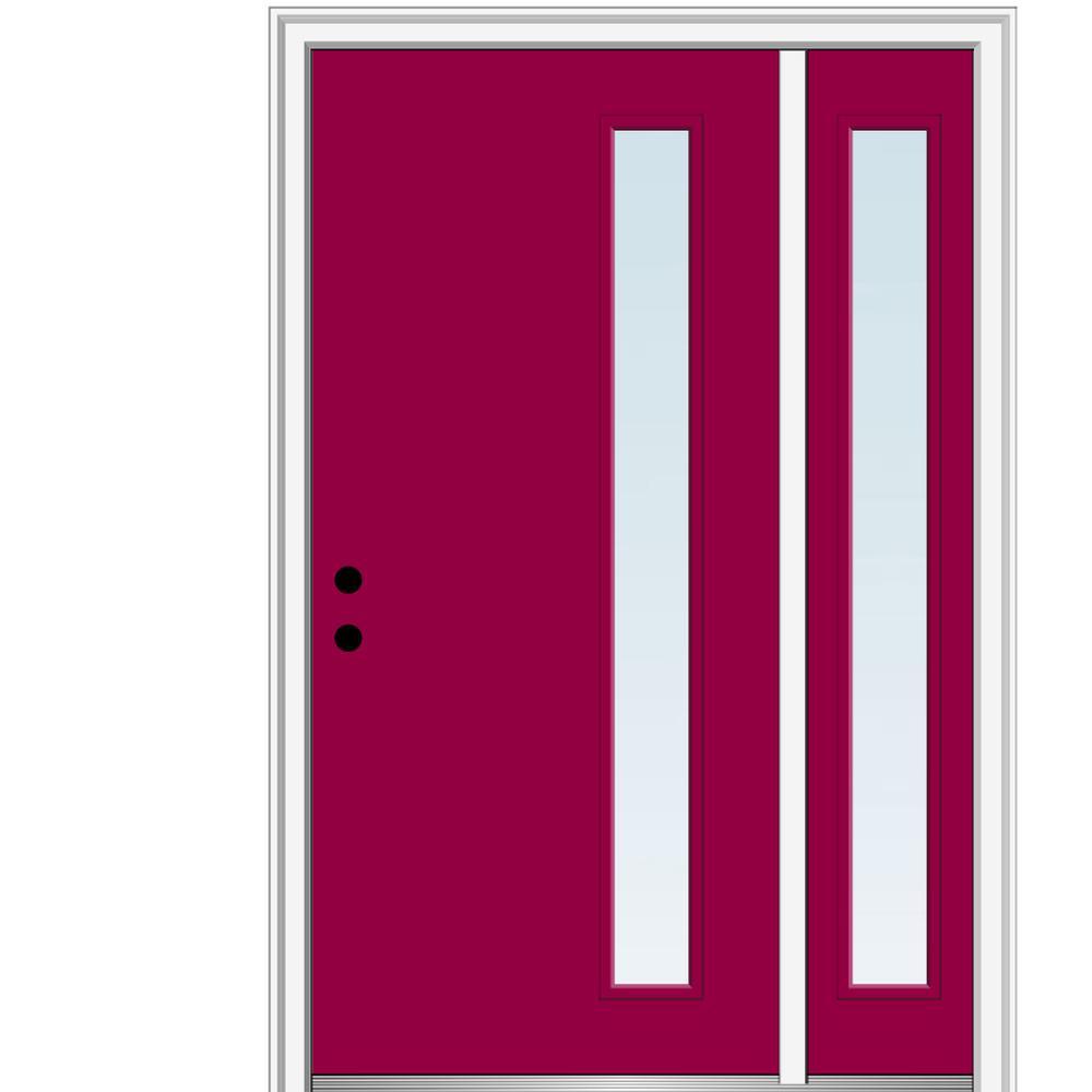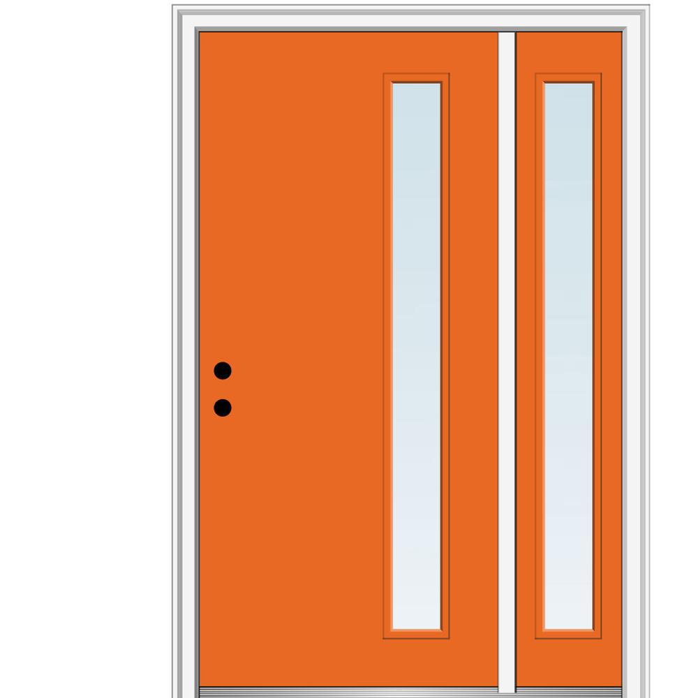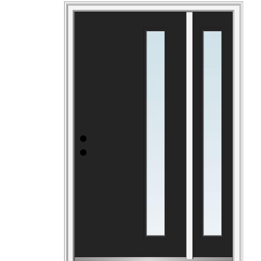 MMI Door Majestic Steel Front Door unit comes with our MSystem 2-year warranty on both the Door Component and the Base Prehung System, as well as a 10-years warranty on the Glass Lite. All of our Majestic Steel doors are galvanized to resist rust and corrosion, are comprised of 24-Gauge, high quality steel with 22-Gauge steel stiles and rails for additional strength and security and come with a one-piece, high density polystyrene core delivering excellent insulation allowing it to meet or exceed current energy code standards. Common door size is 36 in. x 80 in. with 12 in. sidelite. Unit dimension is 51 in. x 81.75 in. The suggested rough opening is 51.5 in. x 82.25 in. This unit comes with a 4-9/16 in. wide primed FrameSaver frame.