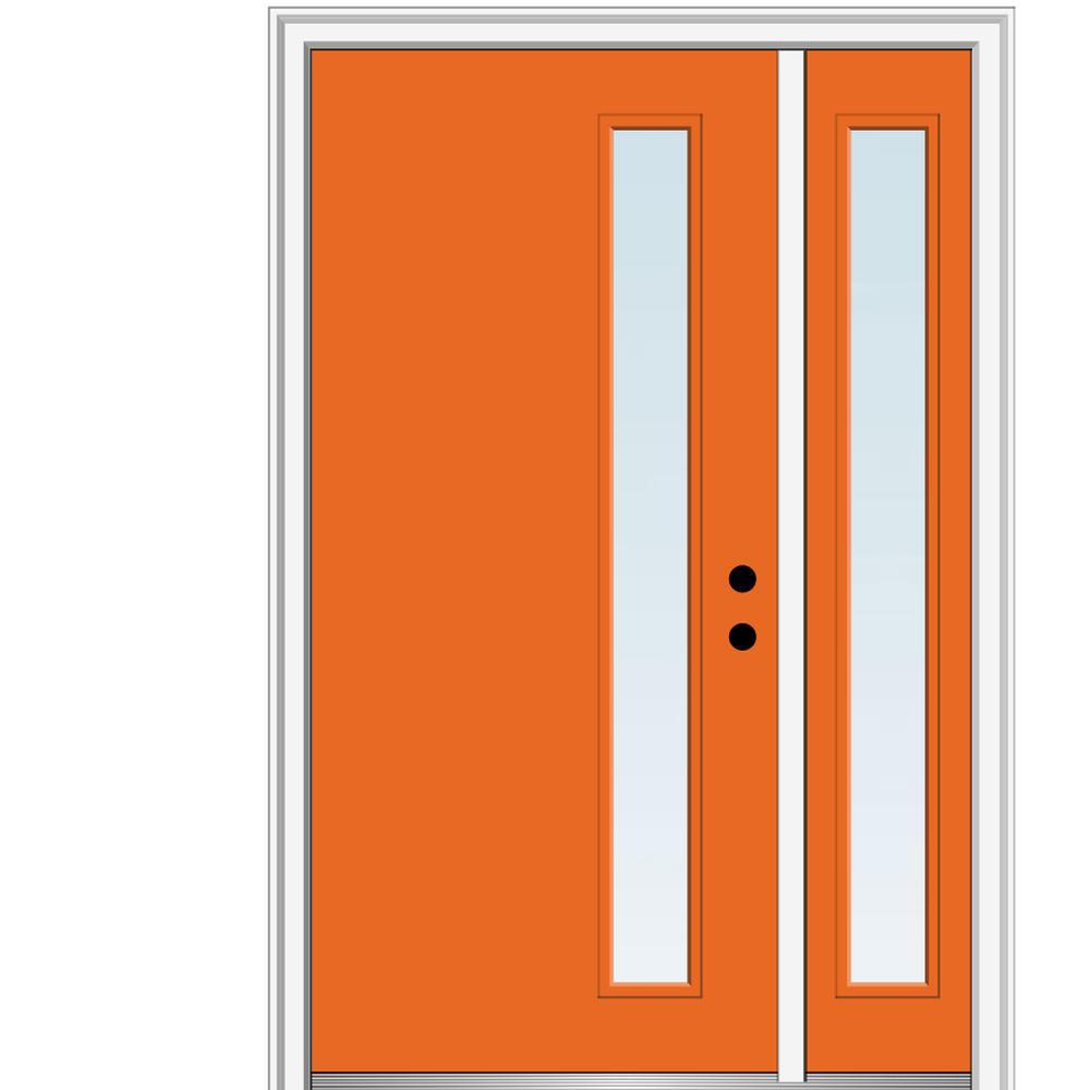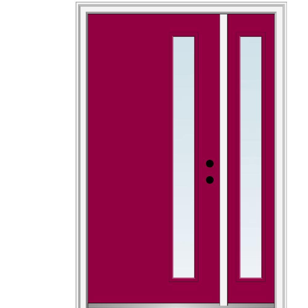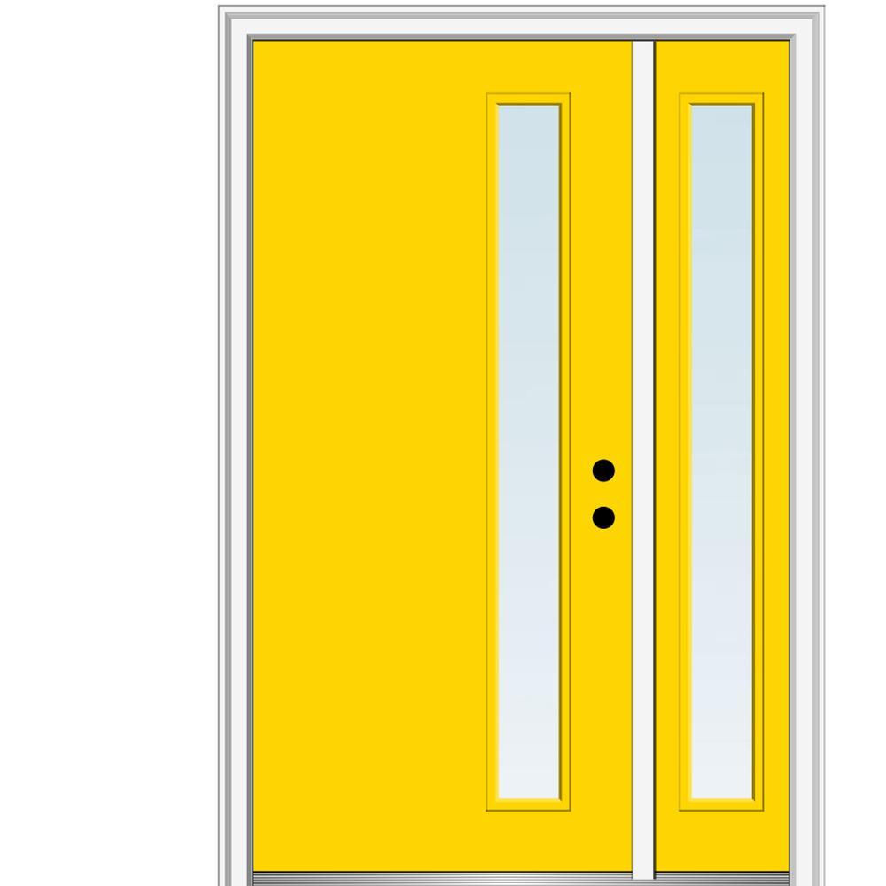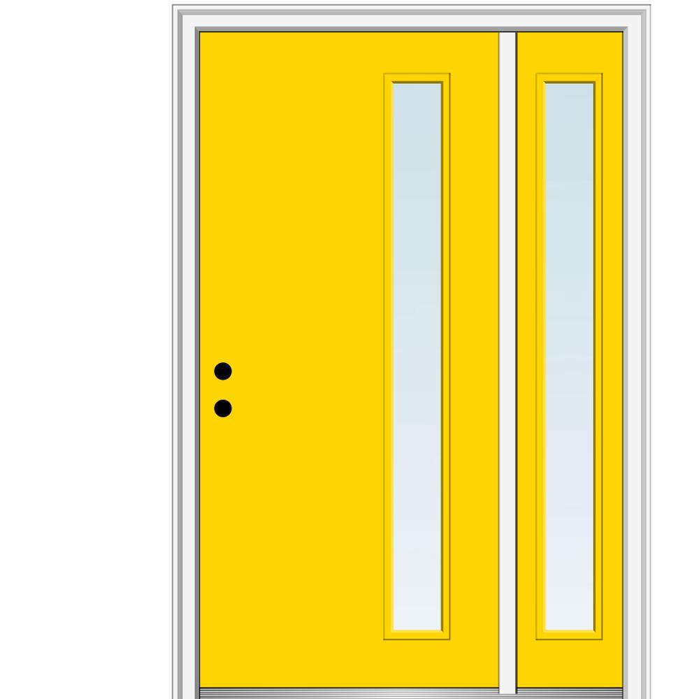 MMI Door Majestic Steel Front Door unit comes with our MSystem 2-year warranty on both the Door Component and the Base Prehung System, as well as a 10-years warranty on the Glass Lite. All of our Majestic Steel doors are galvanized to resist rust and corrosion, are comprised of 24-Gauge, high quality steel with 22-Gauge steel stiles and rails for additional strength and security and come with a one-piece, high density polystyrene core delivering excellent insulation allowing it to meet or exceed current energy code standards. Common door size is 36 in. x 80 in. with 12 in. sidelite. Unit dimension is 51 in. x 81.75 in. The suggested rough opening is 51.5 in. x 82.25 in. This unit comes with a 4-9/16 in. wide primed FrameSaver frame.