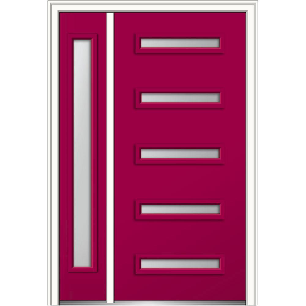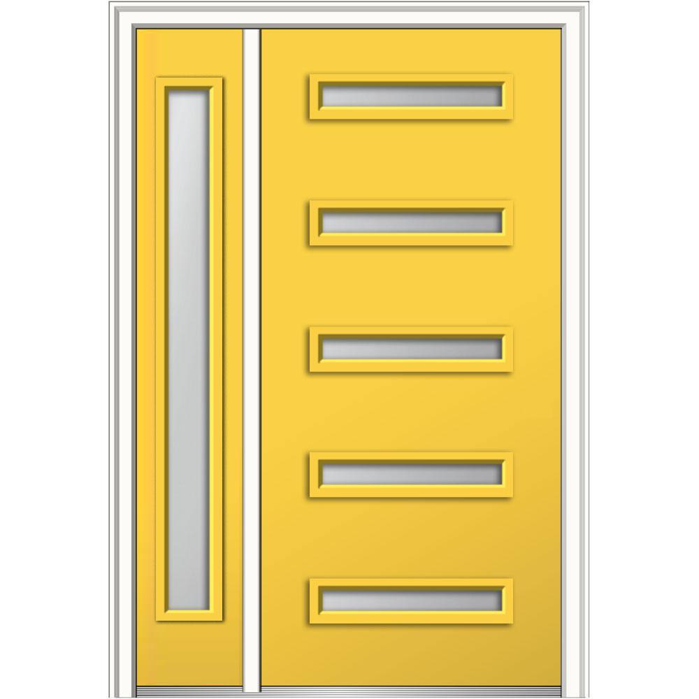 MMI Door Majestic Steel Front Door unit comes with our MSystem 2-year warranty on both the Door Component and the Base Prehung System, as well as a 10-year warranty on the Glass Lite. All of our Majestic Steel doors are galvanized to resist rust and corrosion, are comprised of 24-Gauge, high quality steel with 22-Gauge steel stiles and rails for additional strength and security and come with a one-piece, high density polystyrene core delivering excellent insulation allowing it to meet or exceed current energy code standards. Common door size is 36 in. x 80 in. with 14 in. sidelite. Unit dimension is 53 in. x 81.75 in. The suggested rough opening is 53.5 in. x 82.25 in. This unit comes with a 6-9/16 in. wide primed FrameSaver frame.