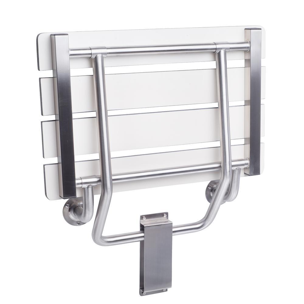 22 in. W x 16 in. D Rectangular White Phenolic Slatted Folding Shower Seat with Wall Bracket Mount