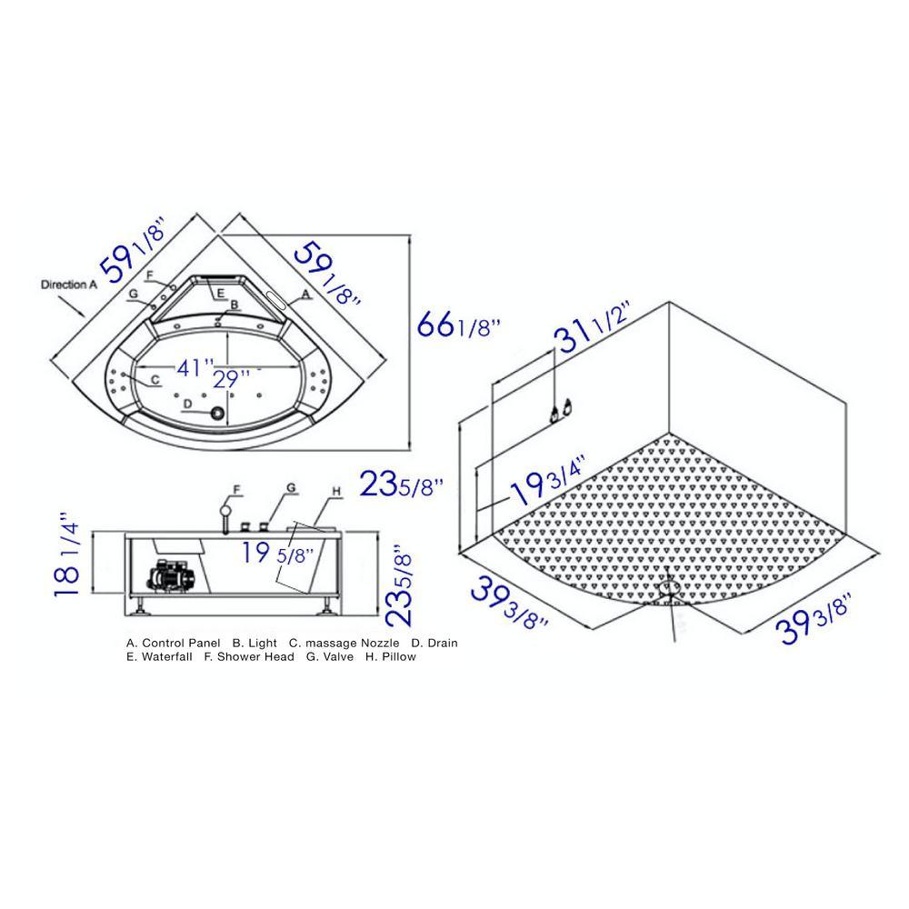 • Keypad control panel: stylish control panel easily operates the bathtubs whirlpool jets, inline heater, digital sound system and chromo therapy lighting