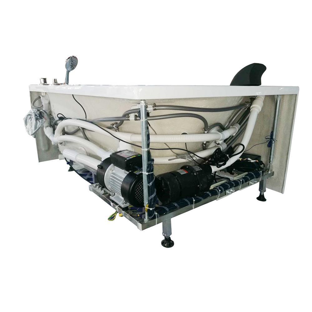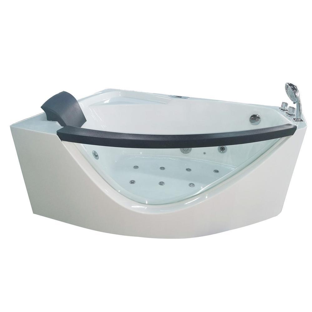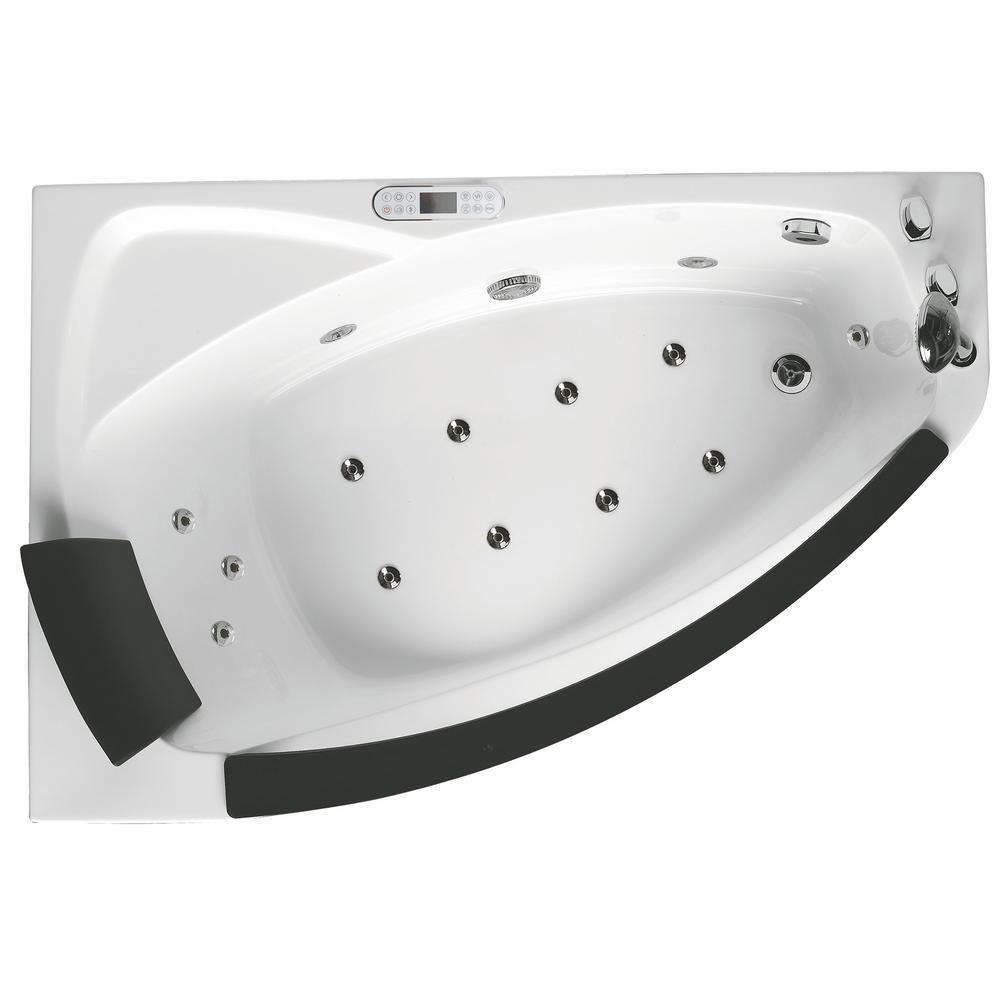 59 in. Acrylic Right Drain Corner Apron Front Whirlpool Bathtub in White
