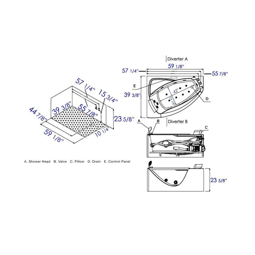 • Keypad control panel: stylish control panel easily operates the bathtubs whirlpool jets, inline heater, digital sound system and chromo therapy lighting