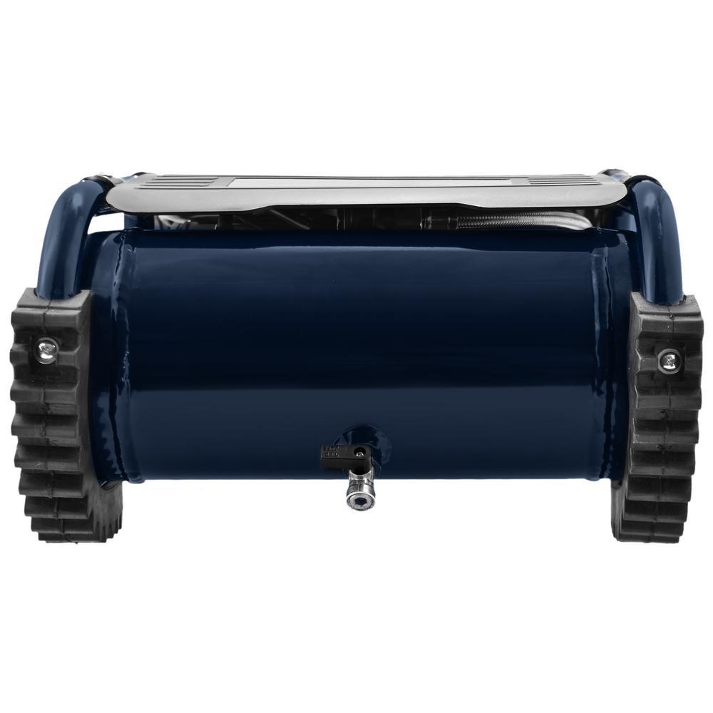 Compressor features a 1.3 gal. tank, 125 maximum PSI, 1.2 CFM at 90 PSI, and 2.0 CFM at 90 PSI