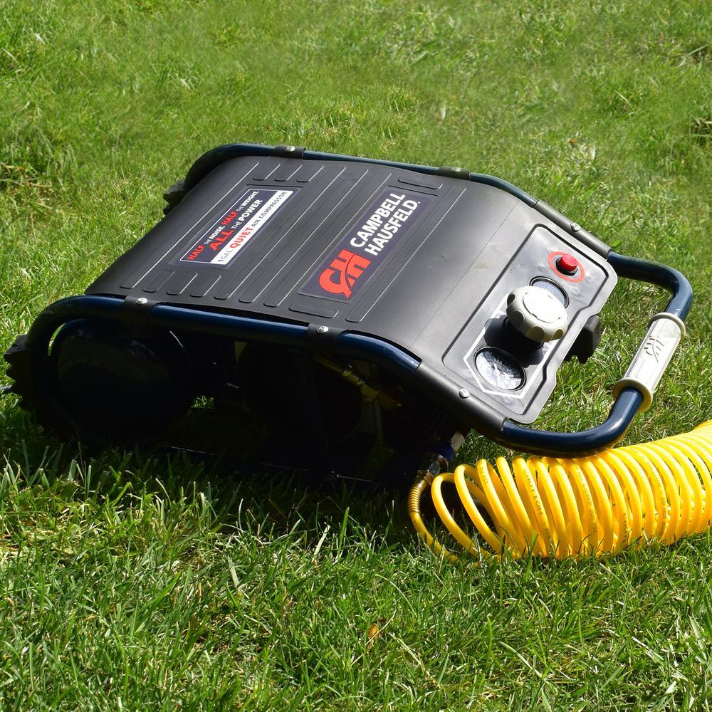 Campbell Hausfelds Quiet line of air compressors has added a 1.3 gal. to its line up. This brand new Quiet Compressor features a revolutionary suitcase design, making it easy to store without taking up a lot of space in your garage or home. At just 29 lbs. you can easily carry it around the jobsite, garage, workshop or house and small-scale contractors can tote it to and from job sites without hassle. The oil-free, maintenance free pump is designed for convenient on-going use and now 50% LIGHTER than our other compressors. At just 68 dBa, this compressor offers a quiet work environment and is ideal for anyone working where noise is a major issue-including inside the house. Boasting 125 PSI and 1.2 CFM at 90 PSI, the compressor is ideal for inflation, hobby painting, stapling, and fastening jobs. Finish your projects faster and easier with Campbell Hausfeld - The Air Power Experts.
