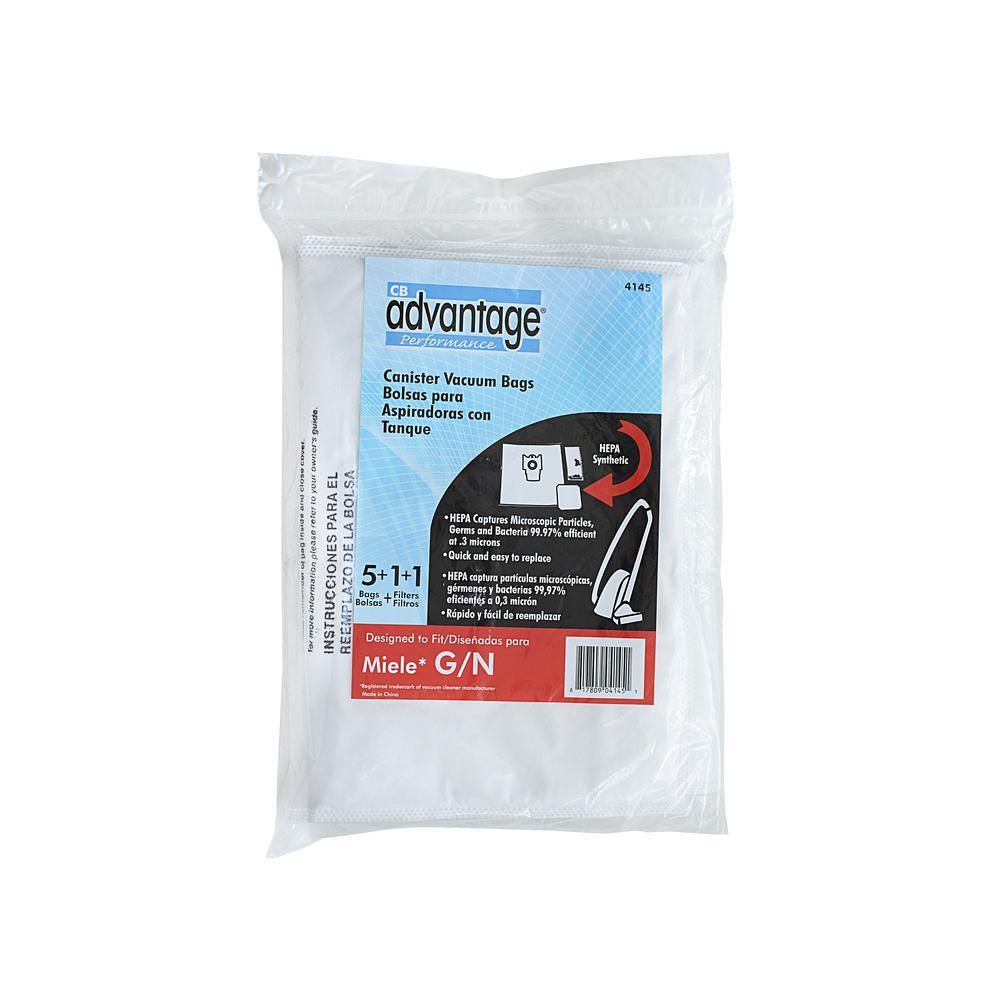 Replacement Meile G/N HEPA vacuum bags and filters designed to fit Miele vaccums. Meile G/N bags fit Miele 400 Series, 600 Series, 800 Series, s2 Series, s5 Series and s8 Series vacuums. Package includes 5 bags, 1 pre motor filter and 1 superclean air filter.