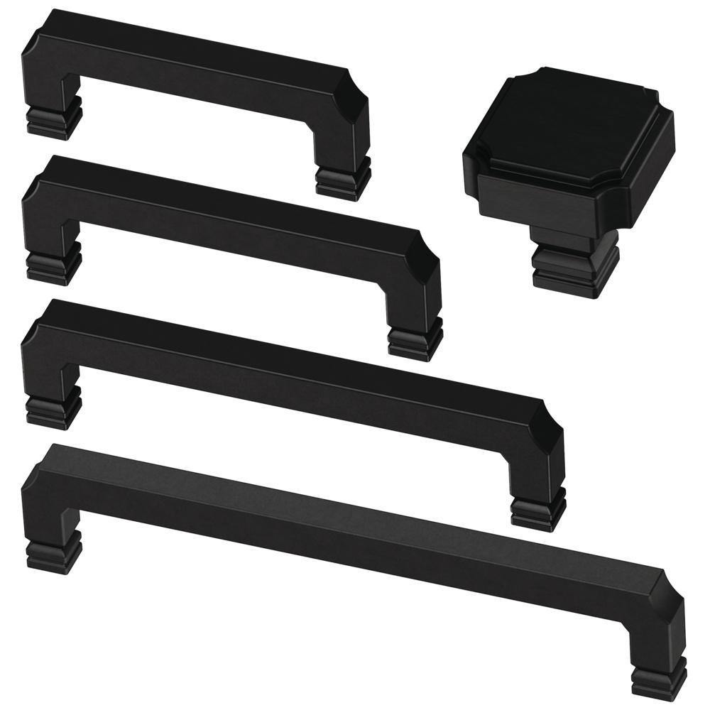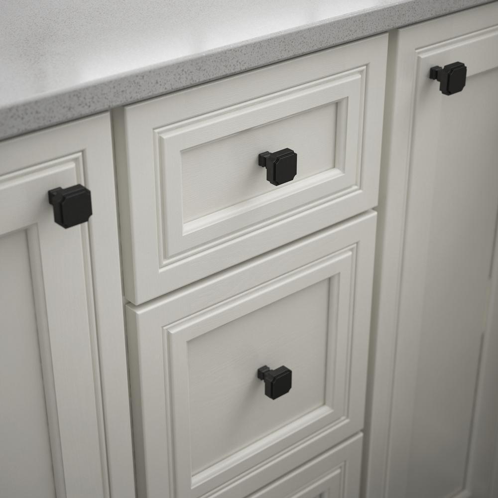 Notched 1-1/8 in. (28mm) Matte Black Square Cabinet Knob