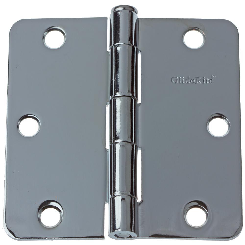 GlideRite Hardware brand interior residential steel full mortise door hinges. Size 3-1/2 in. x 3-1/2 in. with 1/4 in. radius corners. Please see image for radius sizes. Fully assembled hinges with matching installation screws.