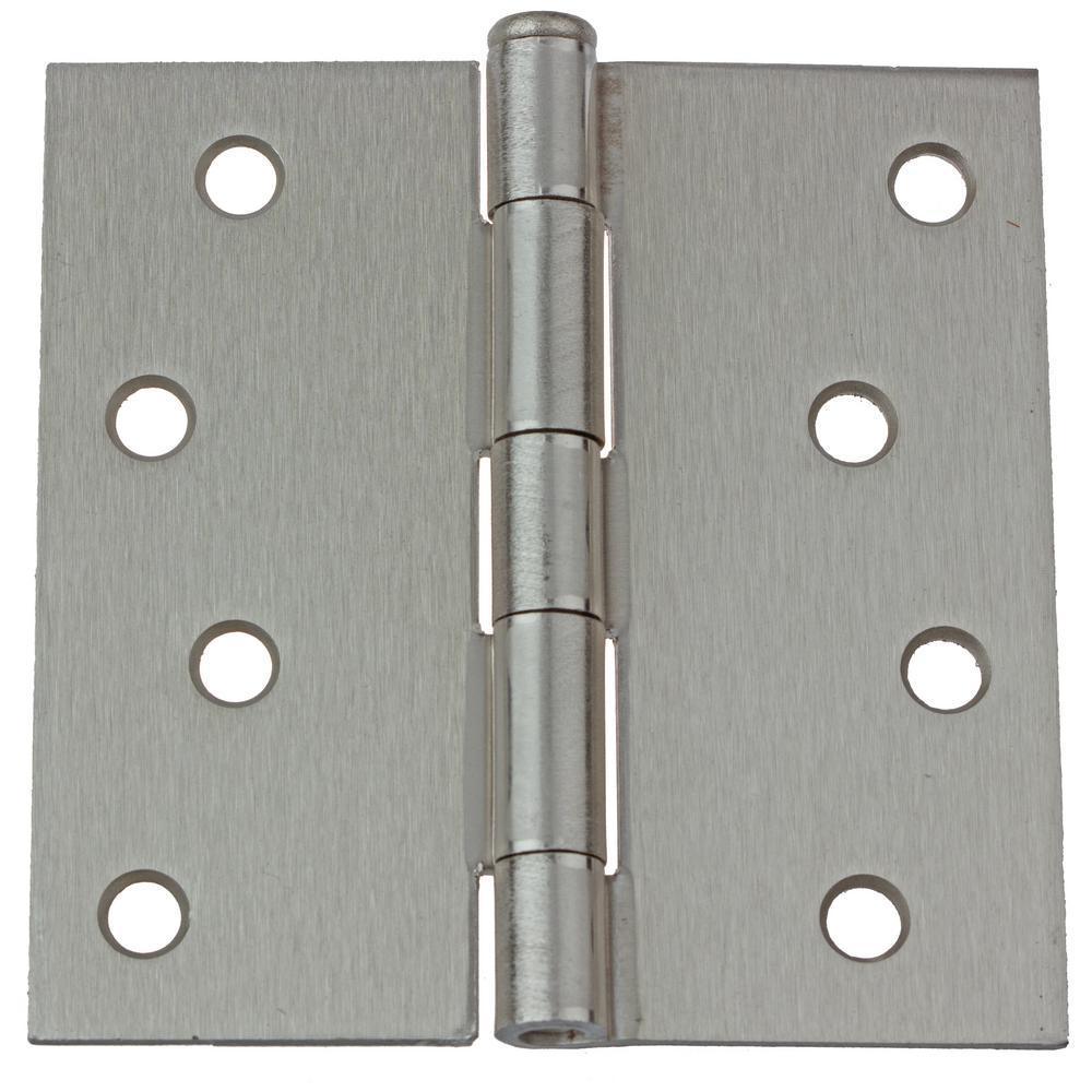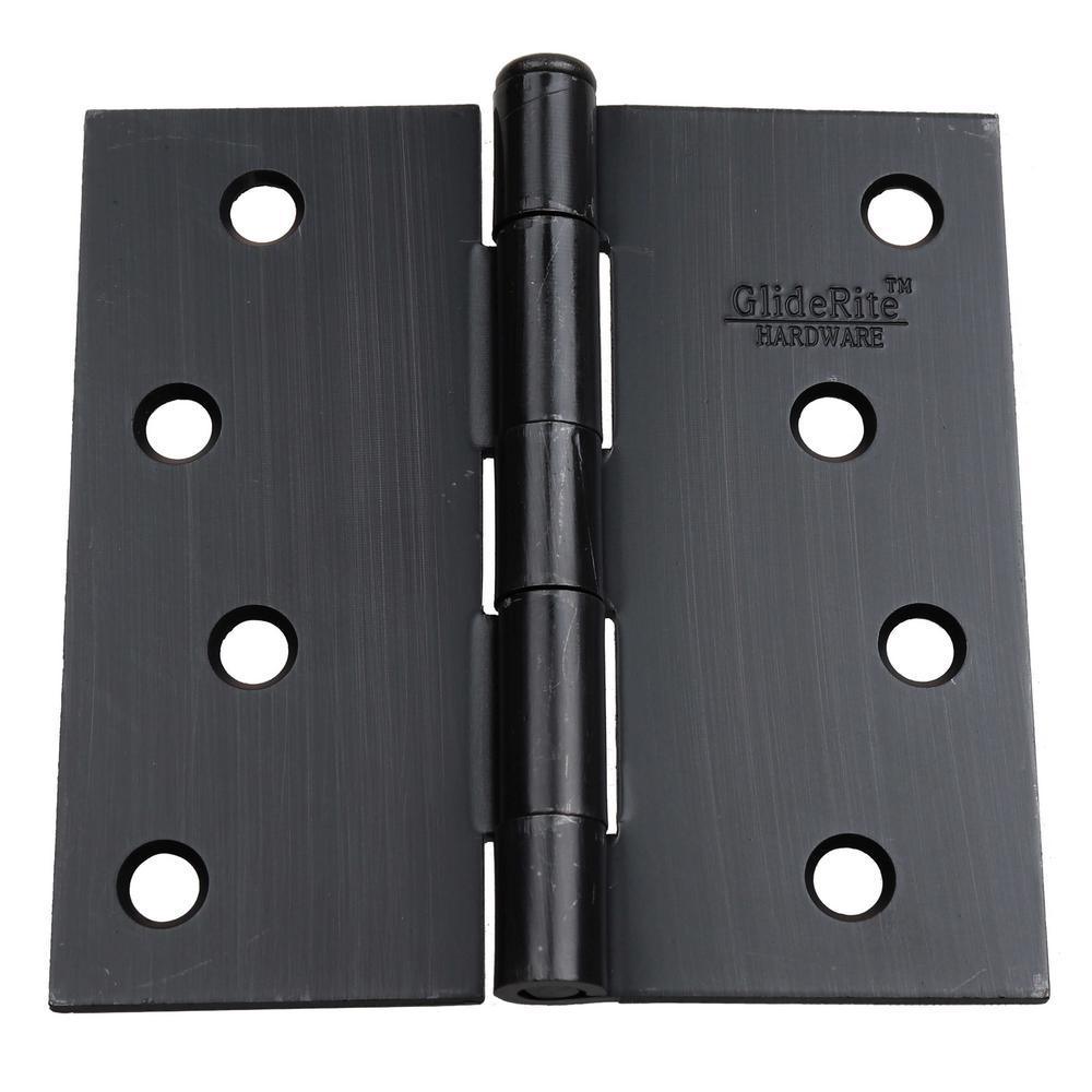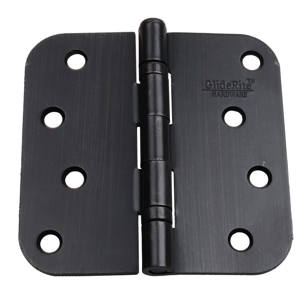 GlideRite Hardware brand interior residential steel full mortise ball bearing door hinges. Size 4 in. x 4 in. with 5/8 in. radius corners. Please see image for radius sizes. Fully assembled hinges with matching installation screws.
