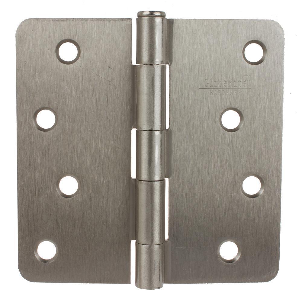 GlideRite Hardware brand interior residential steel full mortise door hinges. Size 4 in. x 4 in. with 1/4 in. radius corners. Please see image for radius sizes. Fully assembled hinges with matching installation screws.