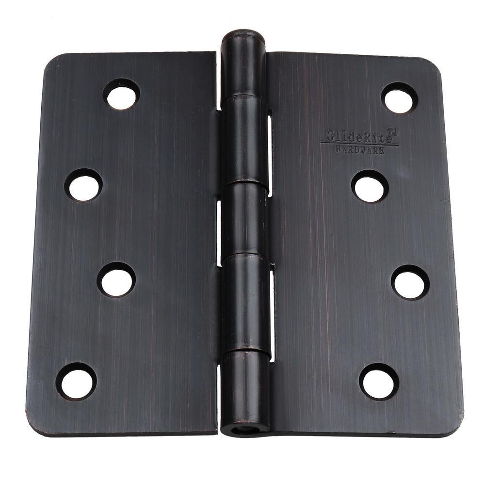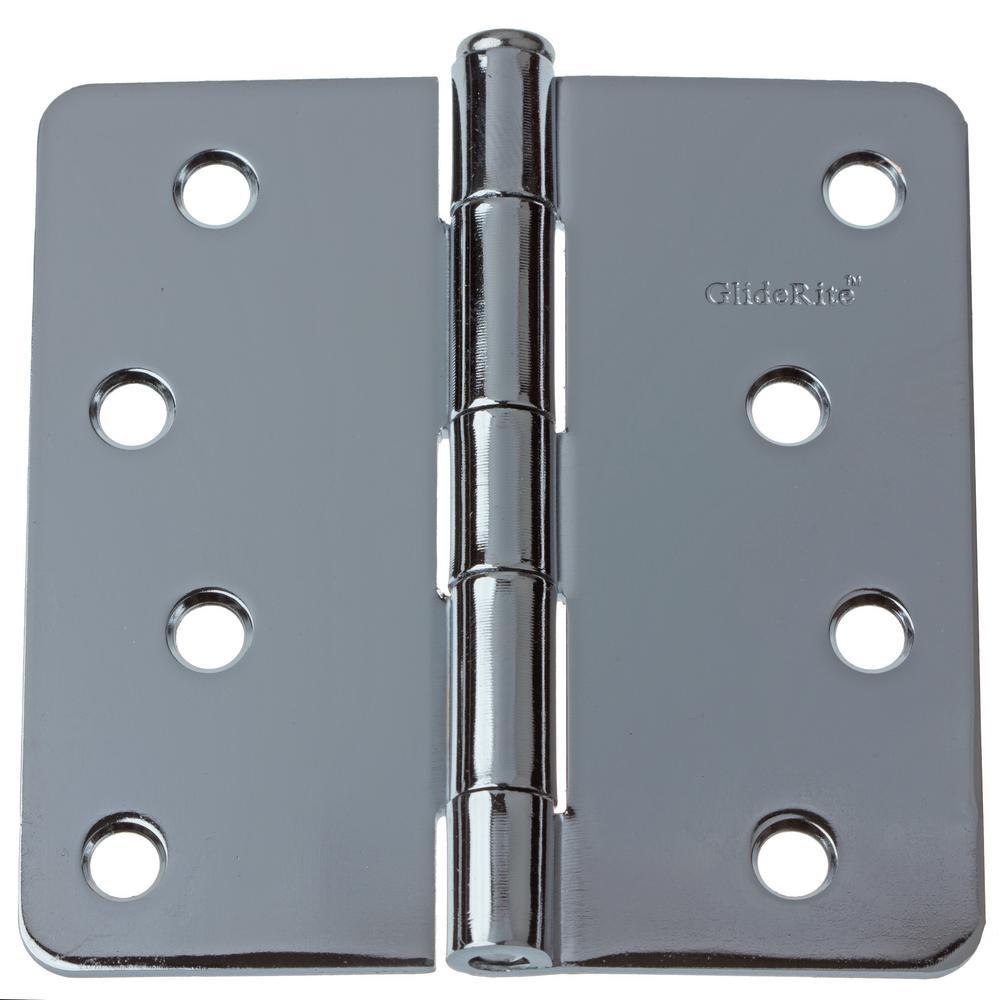 GlideRite Hardware brand interior residential steel full mortise door hinges. Size 4 in. x 4 in. with 1/4 in. radius corners. Please see image for radius sizes. Fully assembled hinges with matching installation screws.
