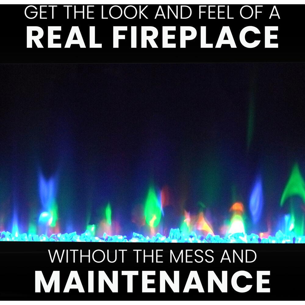 60 in. Wall-Mount Electric Fireplace in White with Multi-Color Flames and Crystal Rock Display