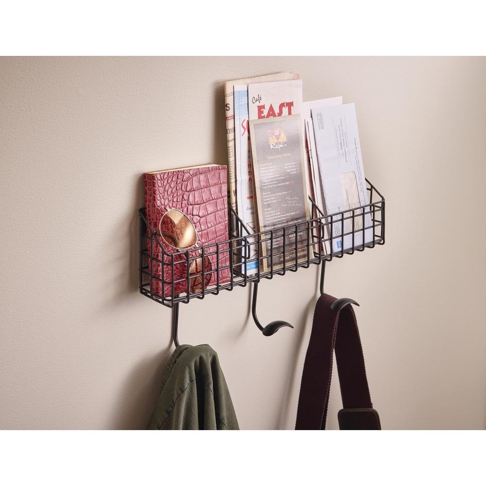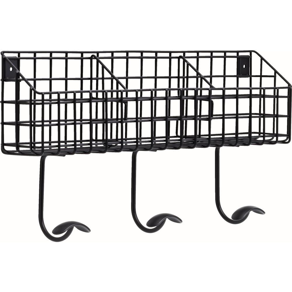 Inspired by schoolhouse industrial decor, the Industrial Basket Hook Rail, in a Flat Black finish, gives you the ability to organize with style. This versatile rail gives you 3 hooks for hanging your coats, book bags, purses and more. The compartmentalized basket adds an extra area for stowing your mail, wallet or other loose items.