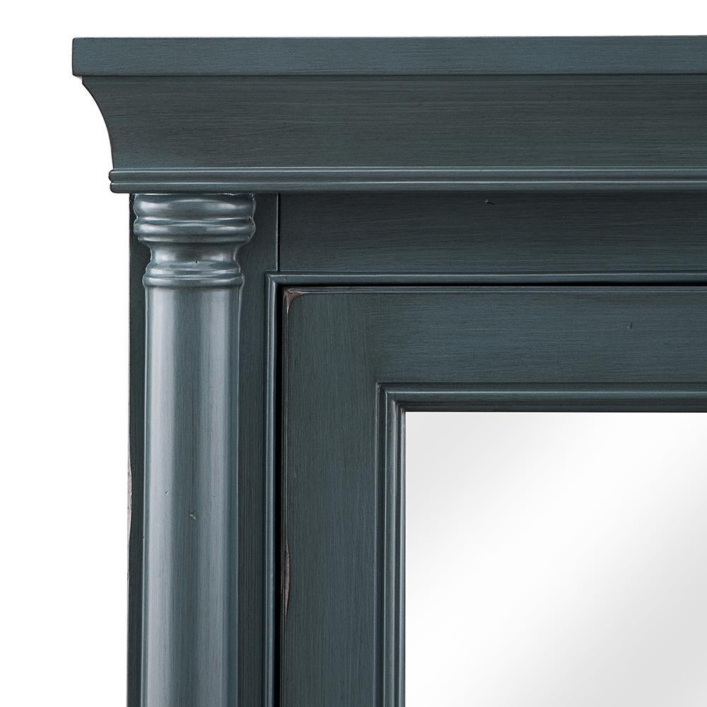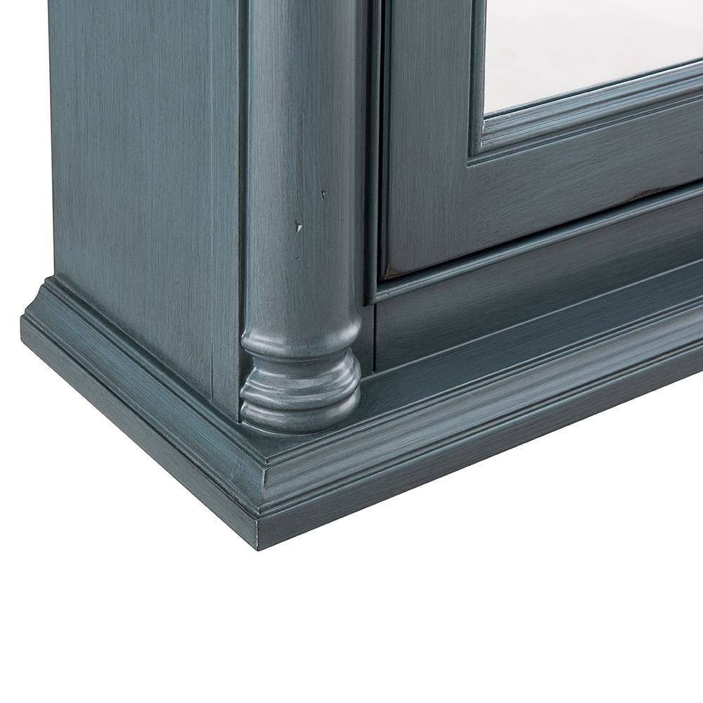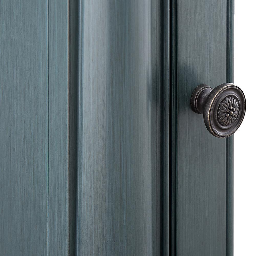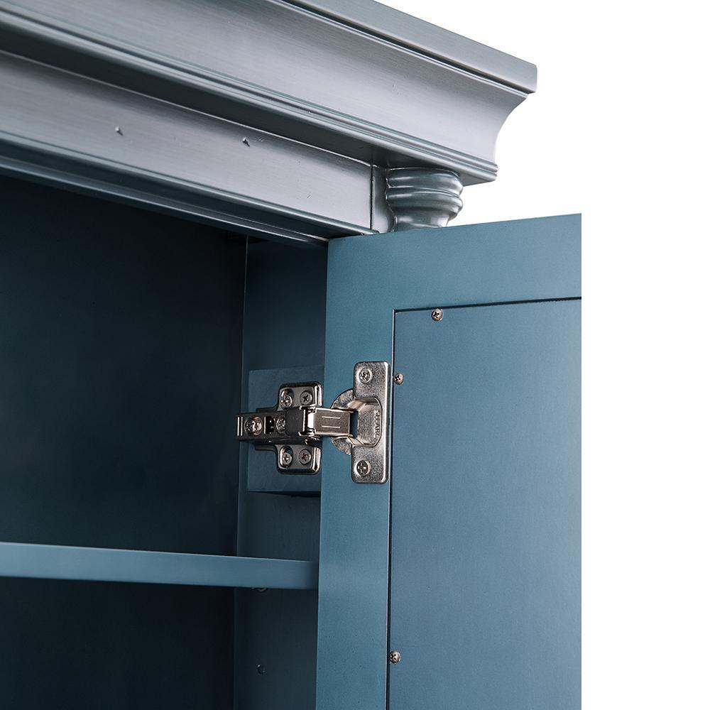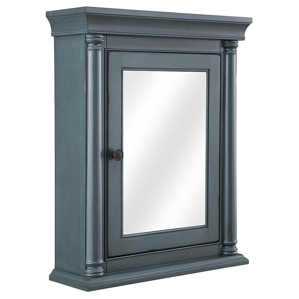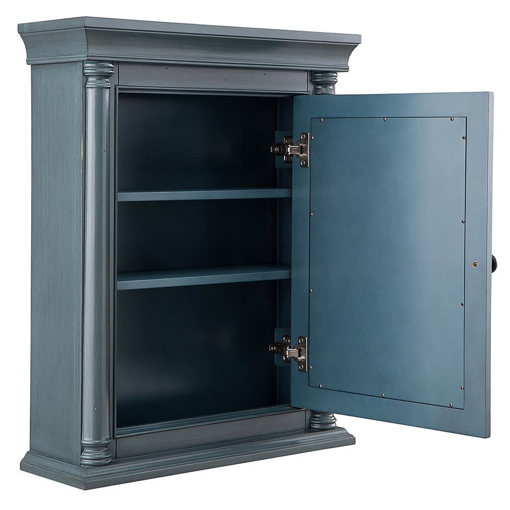 With an intriguing Distressed Blue Fog finish, the Strausse medicine cabinet makes an upscale, elegant impression and a perfect complement to the Strausse vanity. Featuring 2 interior adjustable shelves, you’ll keep bath necessities neatly tucked away behind a mirrored slow-closing door. The Dark Pewter round knob gives sharp contrast, while stately columns round out this furniture-style piece. Create a complete bathroom that leaves visitors envious with this cabinet and all its coordinating pieces in the Strausse collection.