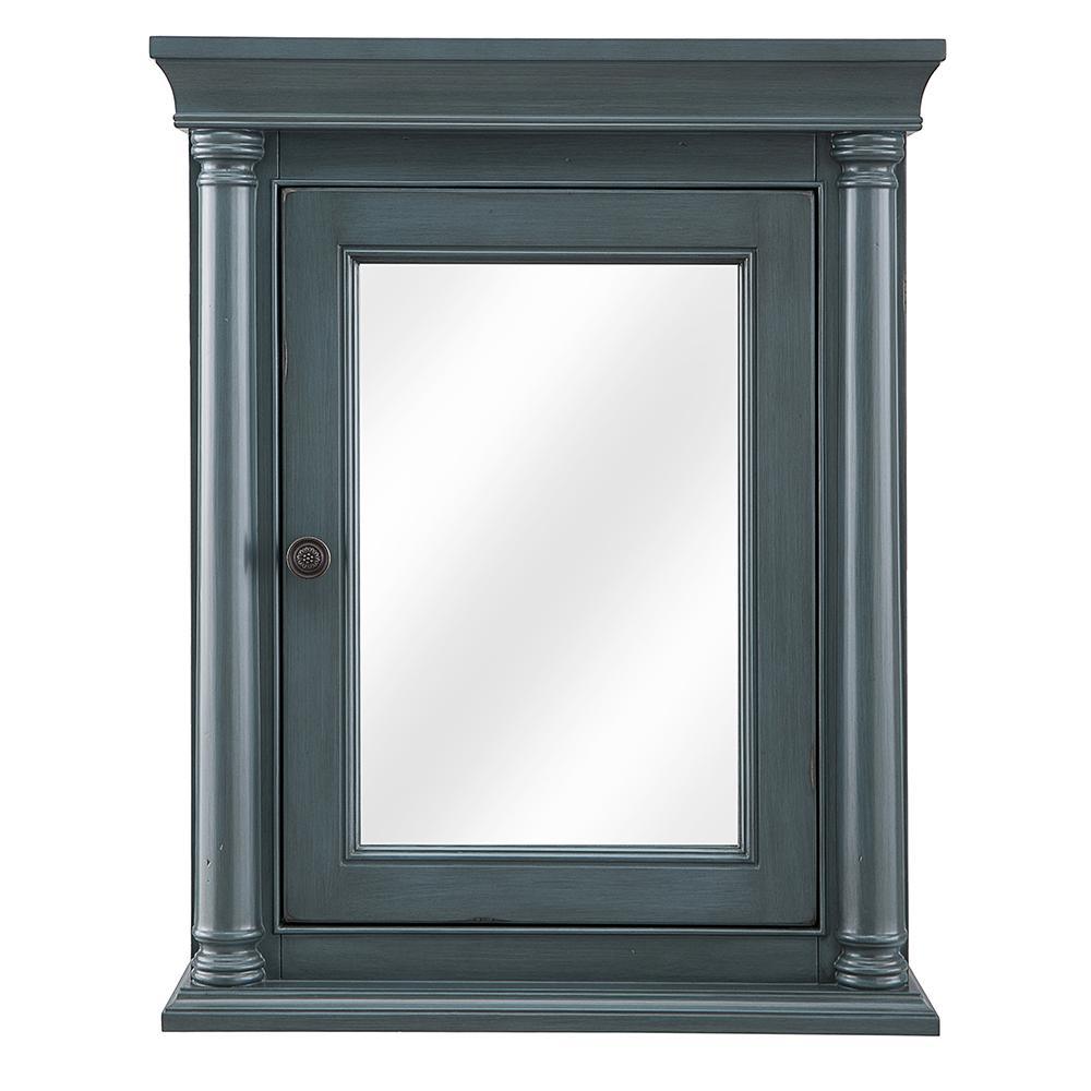 Strousse 24 in. W x 30 in. H Surface Mount Mirrored Medicine Cabinet in Distressed Blue Fog