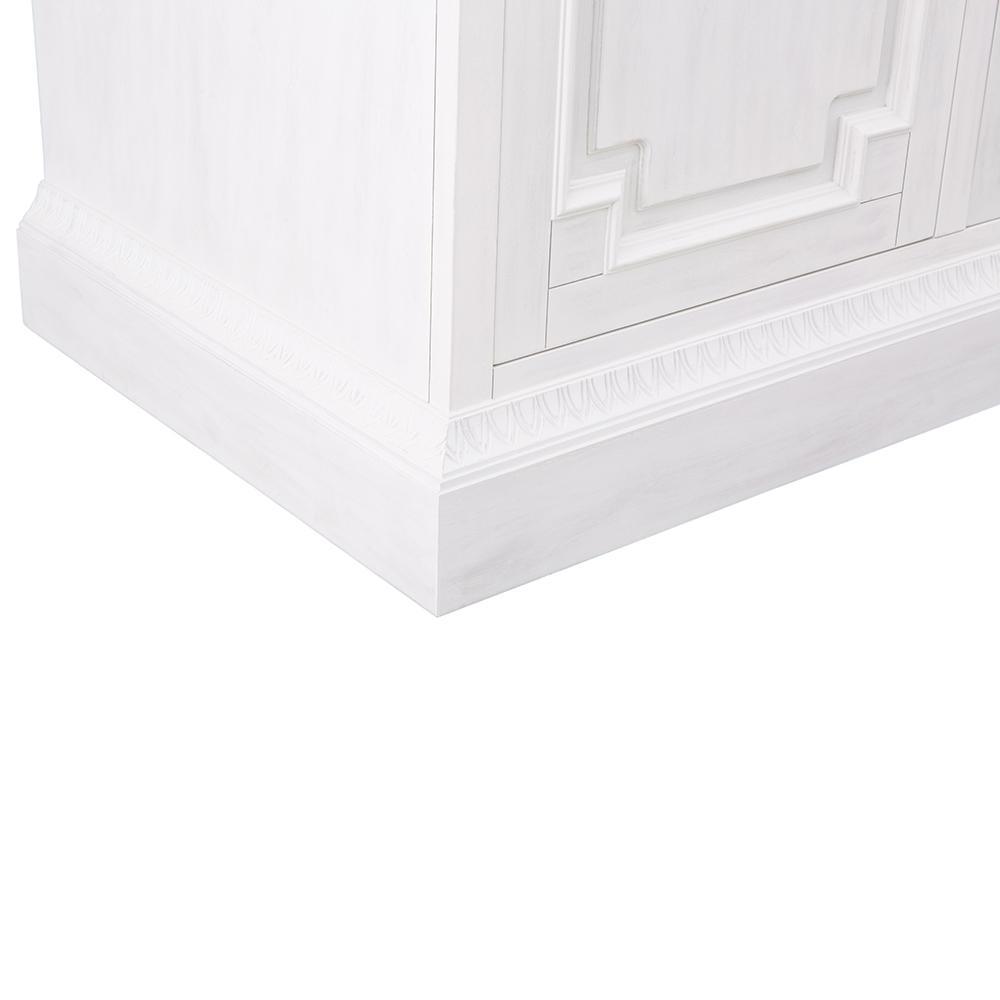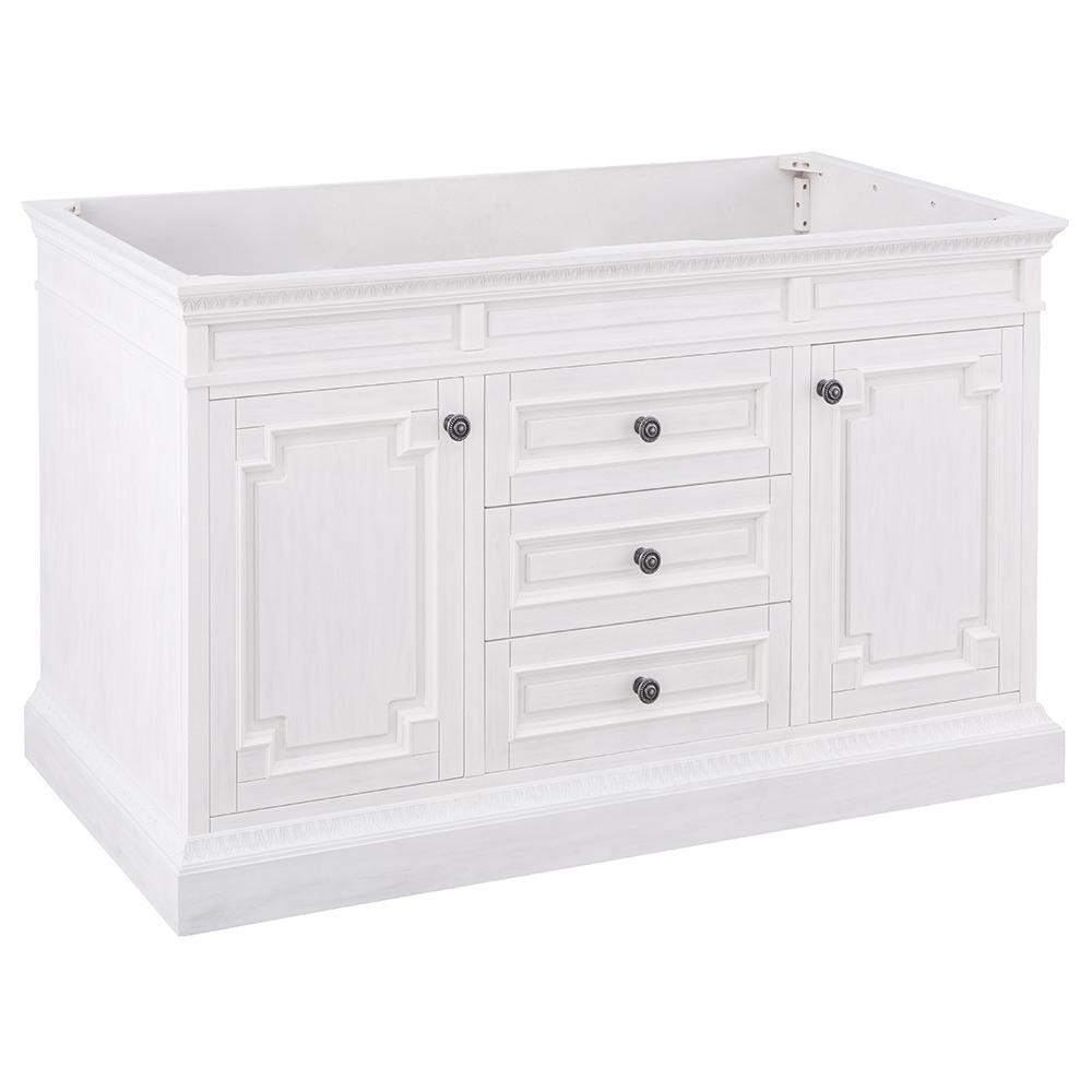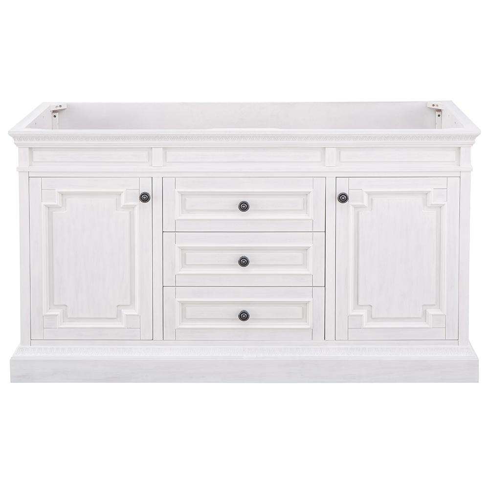 The antique styling of the Cailla 60 in. Bath Vanity lends an air of sophistication to your bathroom. Featuring design elements such as a white wash finish, decorative doors, and an egg and dart molding along the top and bottom, this piece lends an elegant charm with unique attention to detail. Beyond the gorgeous exterior, the Cailla vanity provides ample storage space with two large interior cabinets and three full extension, slow close drawers to house bathroom toiletries. The Cailla vanity pairs perfectly with the other pieces of the Cailla collection for a sophisticated bath remodel.