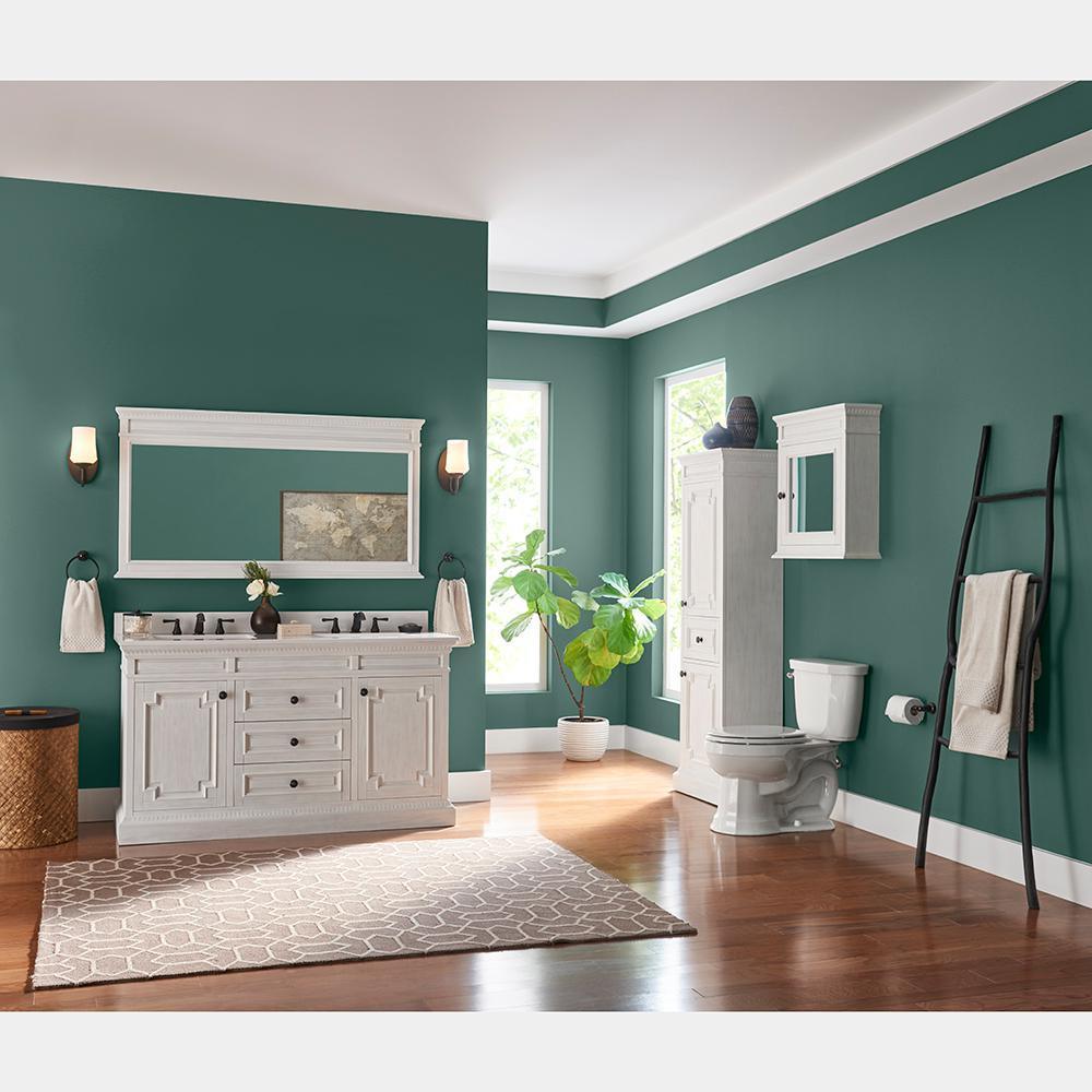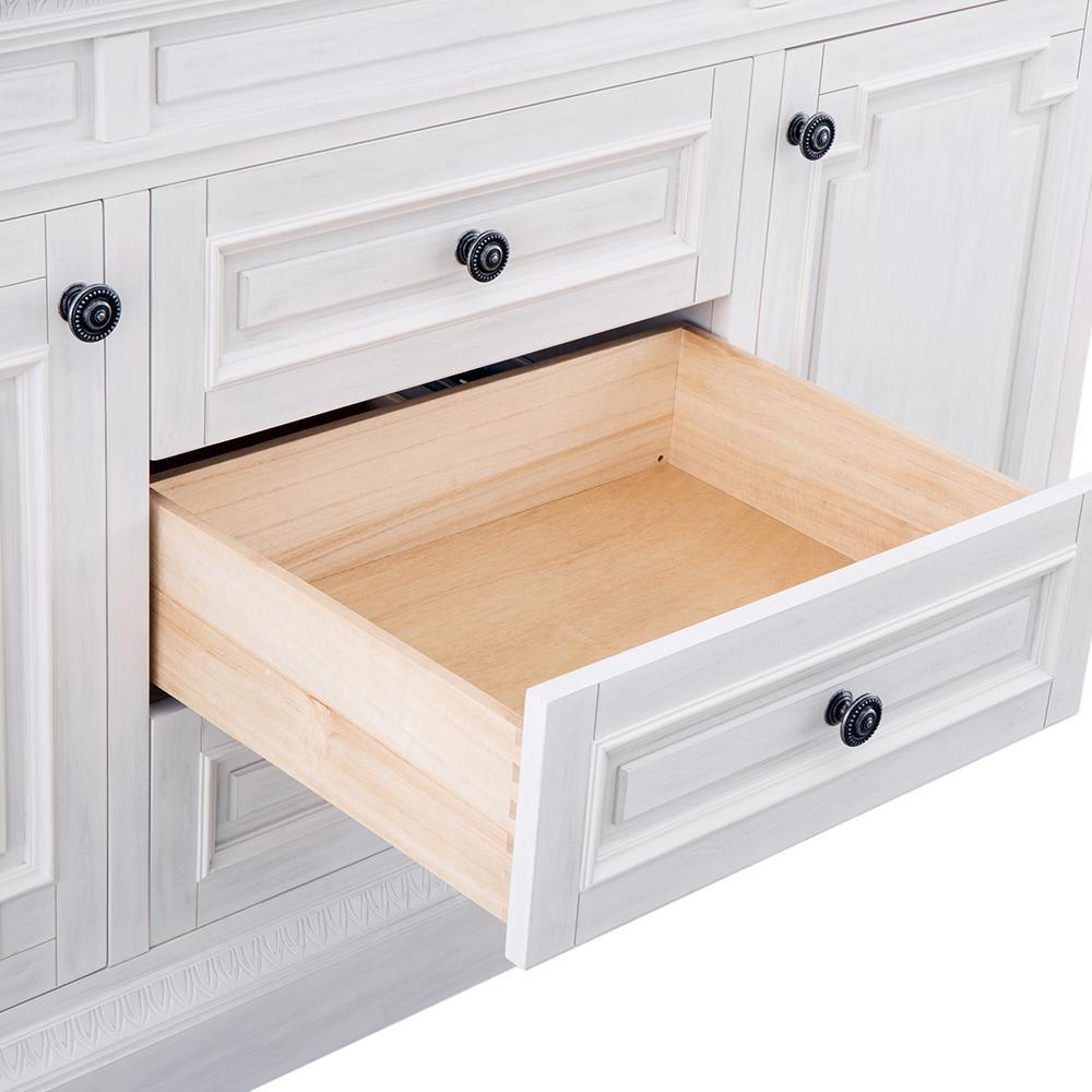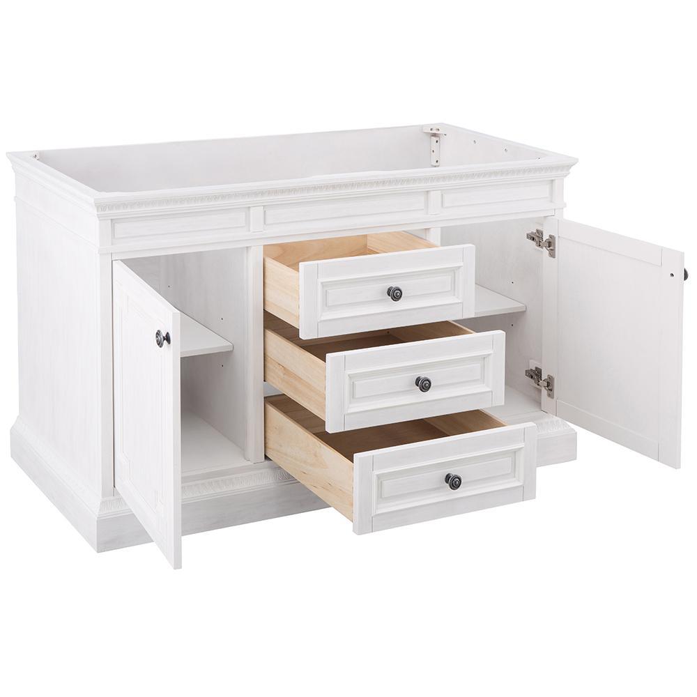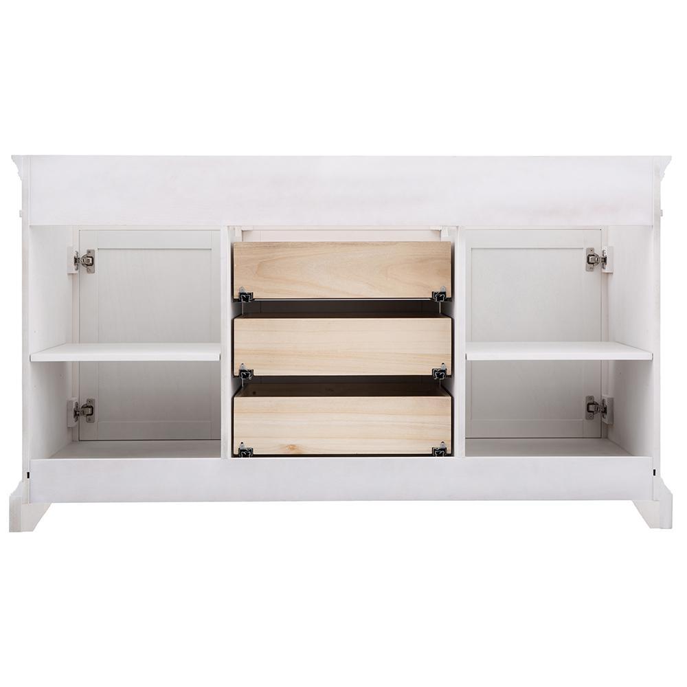 The antique styling of the Cailla 60 in. Bath Vanity lends an air of sophistication to your bathroom. Featuring design elements such as a white wash finish, decorative doors, and an egg and dart molding along the top and bottom, this piece lends an elegant charm with unique attention to detail. Beyond the gorgeous exterior, the Cailla vanity provides ample storage space with two large interior cabinets and three full extension, slow close drawers to house bathroom toiletries. The Cailla vanity pairs perfectly with the other pieces of the Cailla collection for a sophisticated bath remodel.