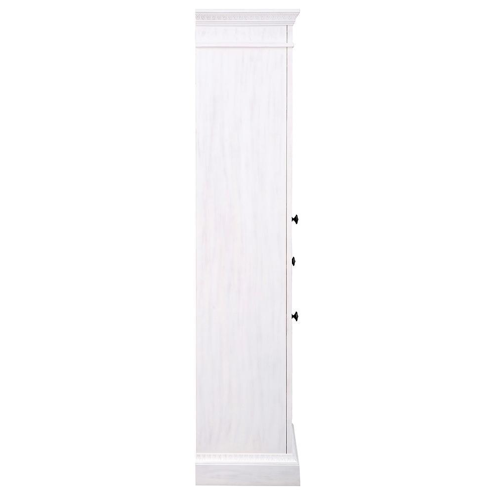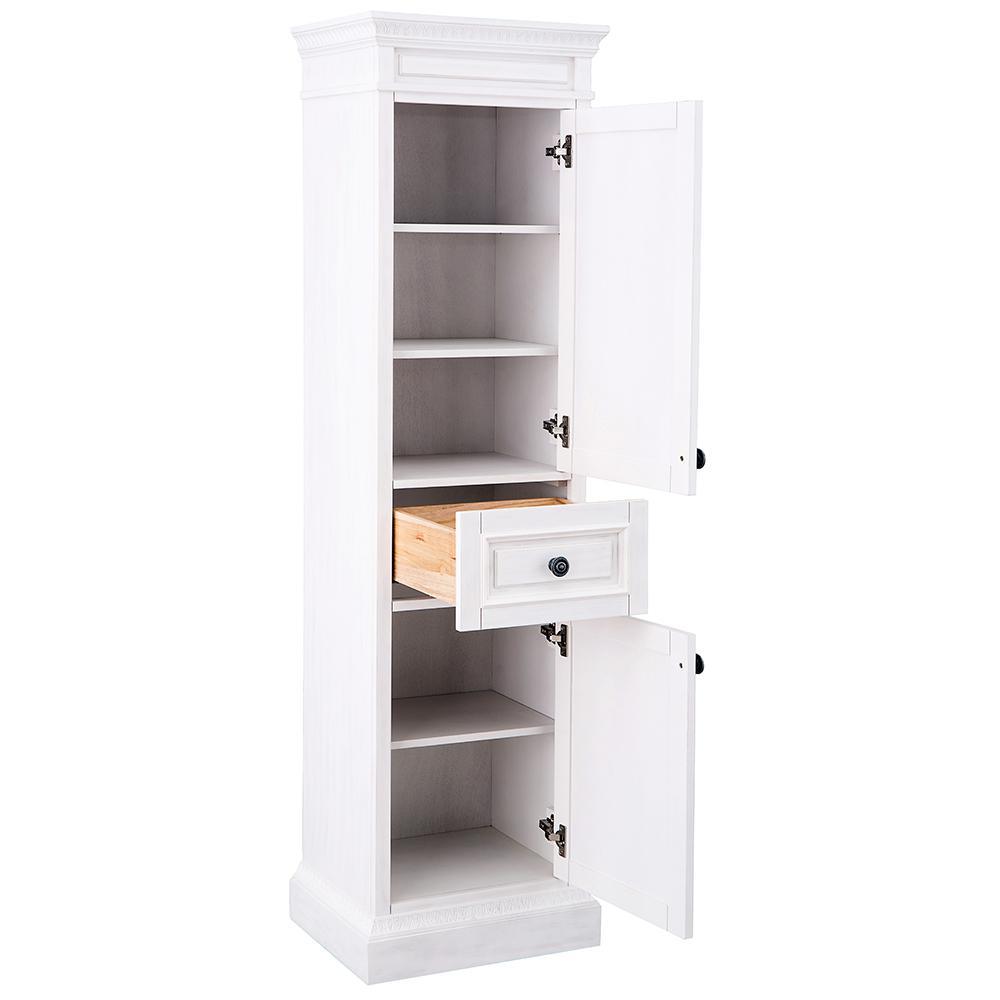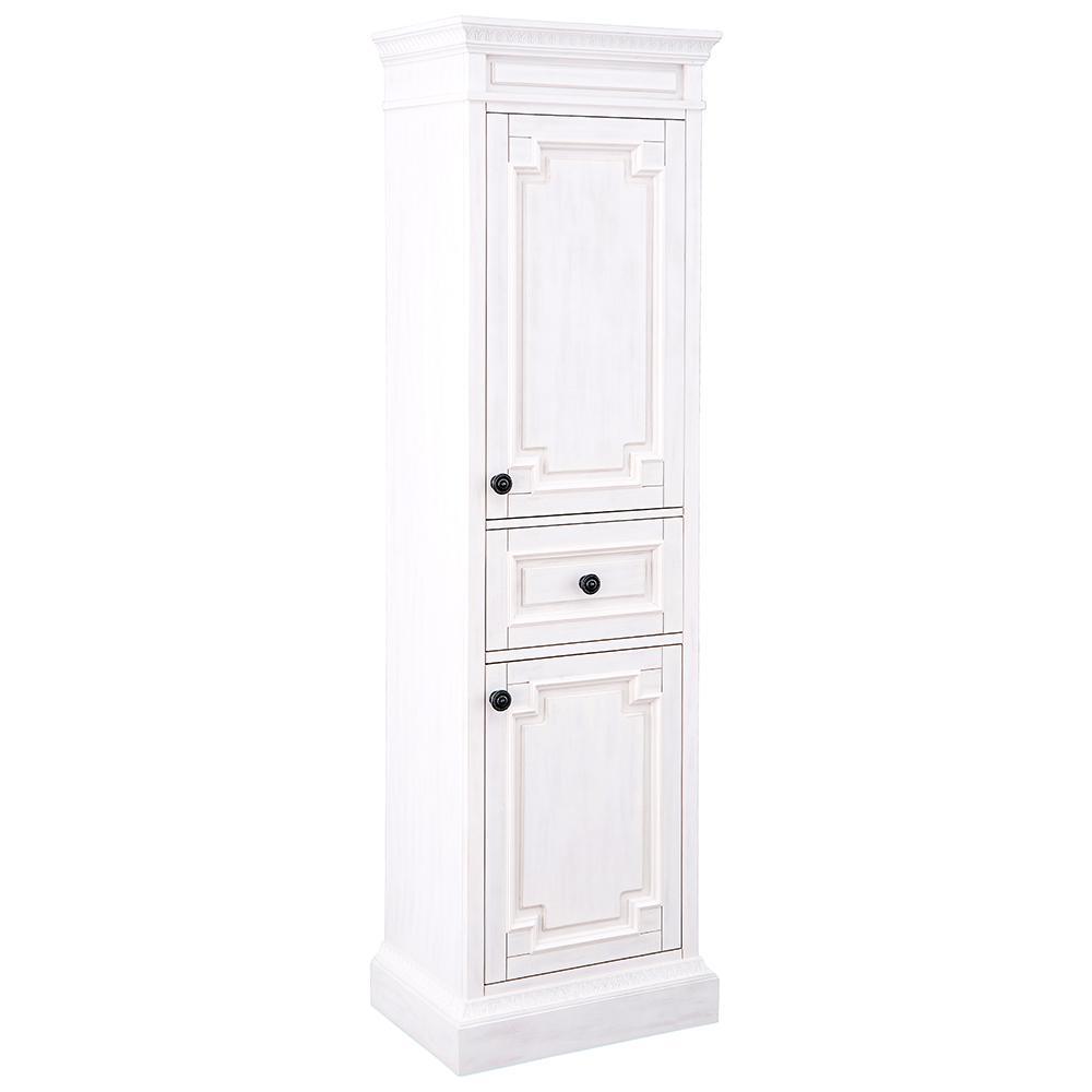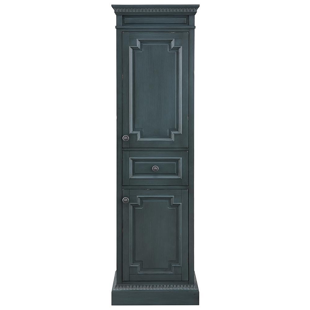 The Cailla linen cabinet combines elements of antique furniture style with a distressed finish, decorative doors, and egg and dart molding for a sophisticated and charming bathroom. With two large cabinets, a full extension, slow close drawer, and adjustable shelves, this cabinet provides ample storage space in a compact design that measures 20 in. W x 15 in. D x 72 in. H. Its elegant wash white finish and dark pewter knobs add to its sophistication, while its sturdy construction of poplar, MDF substrate, and natural wood veneers ensures long-lasting use. This linen cabinet arrives fully assembled and meets the strictest health-based air quality standards. Plus, it comes with a limited 1-year warranty for added peace of mind. Elevate your bathroom with the Cailla linen cabinet from the Cailla Collection.