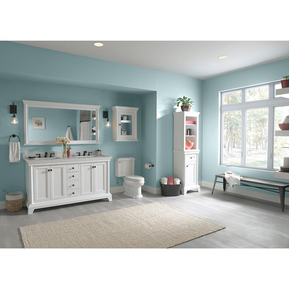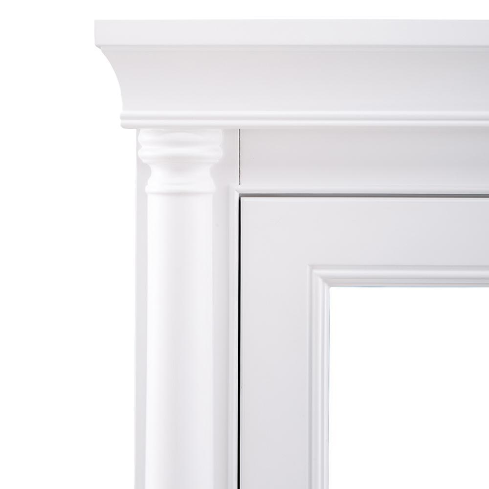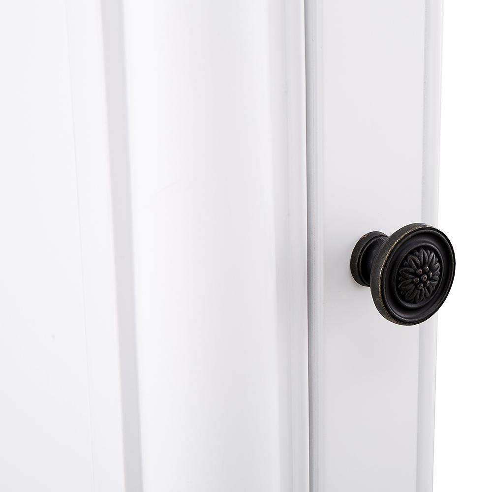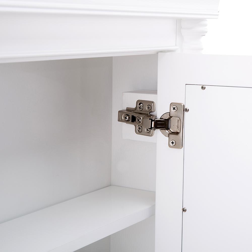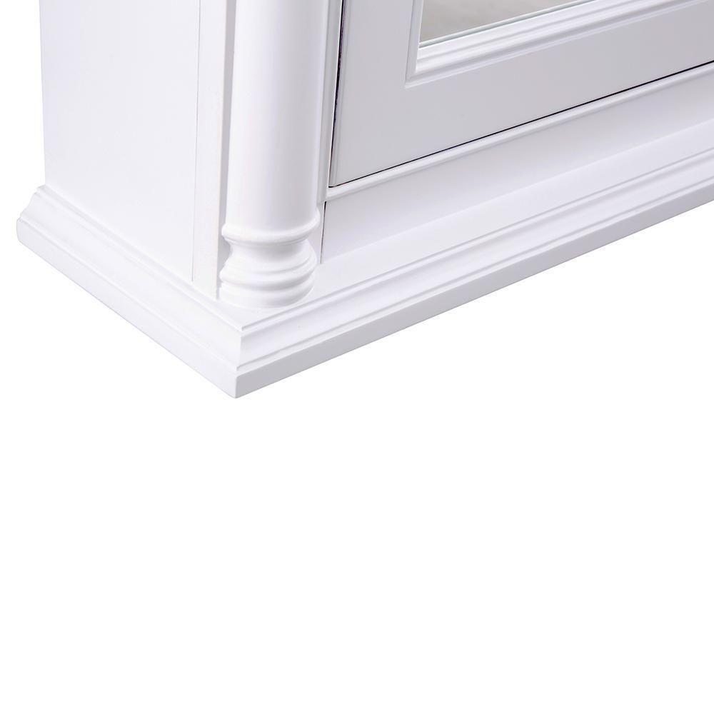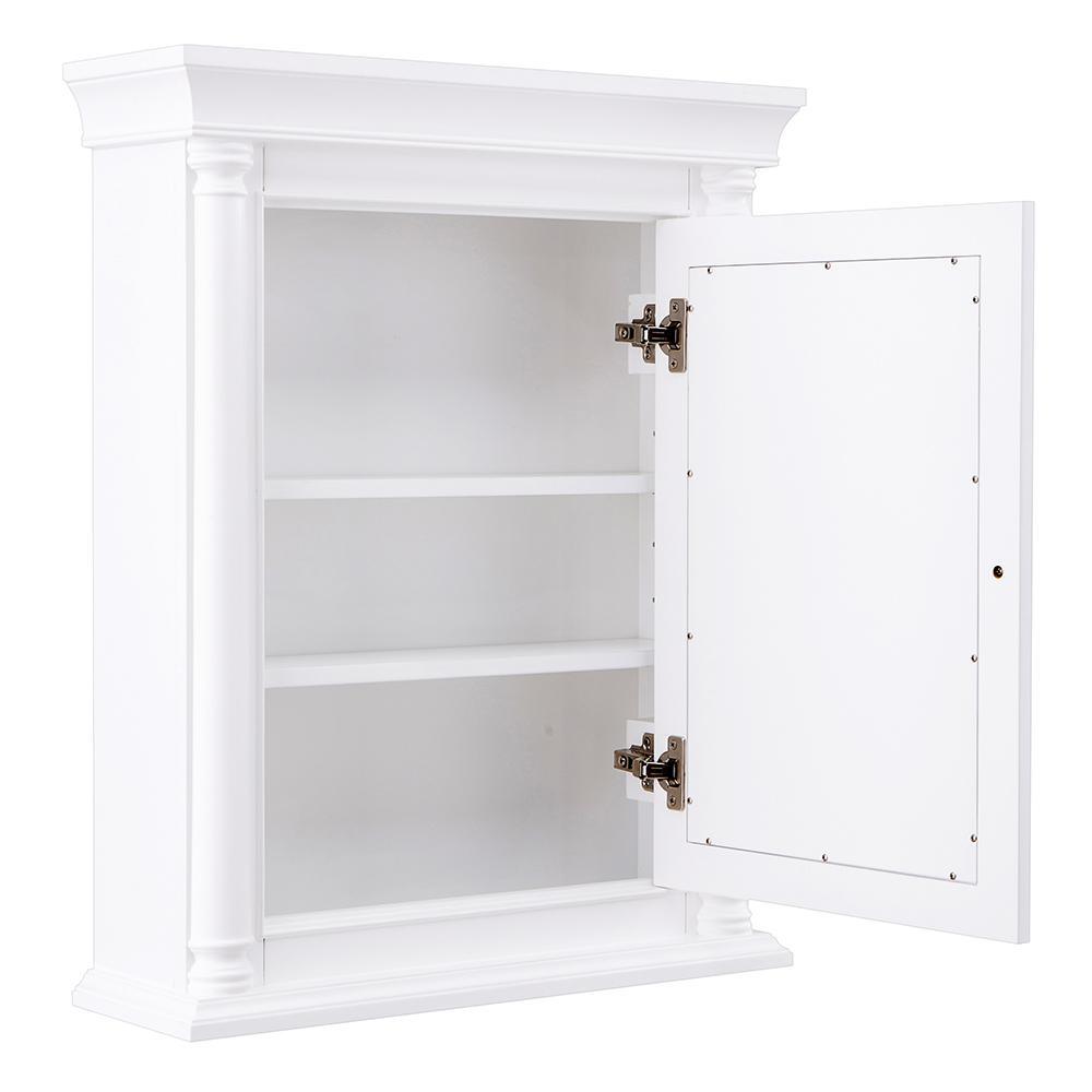 With a pristine White finish, the Strausse medicine cabinet makes an upscale, elegant impression and a perfect complement to the Strausse vanity. Featuring 2 interior adjustable shelves, you’ll keep bath necessities neatly tucked away behind a mirrored slow-closing door. The Dark Pewter round knob gives sharp contrast, while stately columns round out this furniture-style piece. Create a complete bathroom that leaves visitors envious with this cabinet and all its coordinating pieces in the Strausse collection.