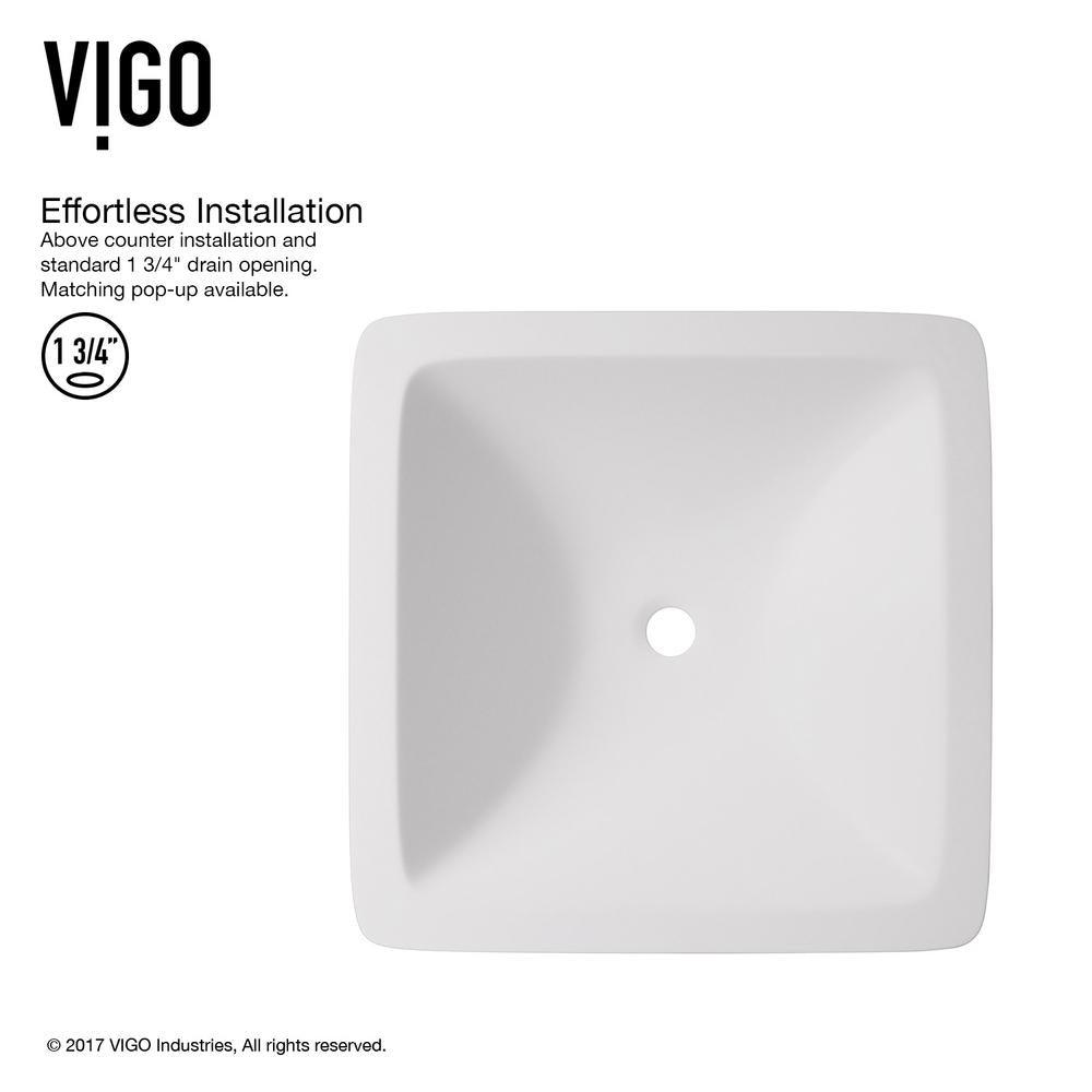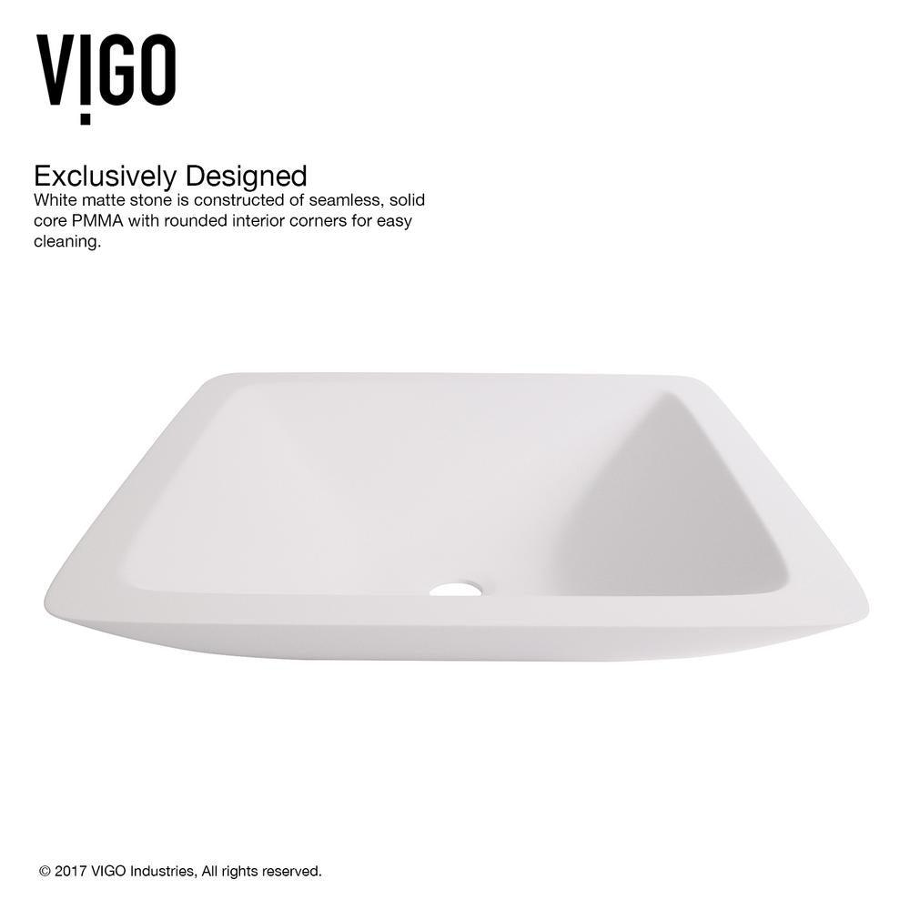 Stay well-rounded with the square shape of the VIGO Begonia Matte Stone Vessel Bathroom Sink Set With the Linus Vessel Faucet. The sink's Matte Stone construction has rounded edges for easy-cleaning; its non-porous, solid through to the core construction makes the sink anti-bacterial as well as stain, impact and scratch resistant. The sink is expertly paired with the Linus Vessel Faucet, which features a 7-layer coated finish that resists corrosion, tarnish and rust. A complementary pop-up drain in a matching finish rounds out this bathroom sink set.
