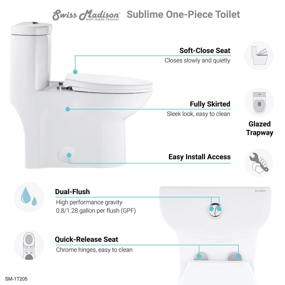 Sublime 1-Piece 0.8/1.28 GPF Dual Flush Elongated Toilet in White