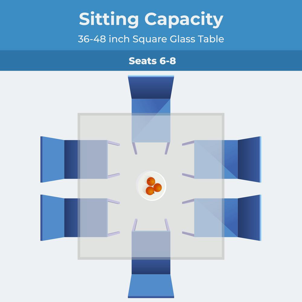 - Available sizes: From 12 in. up to 60 in. square glass table top