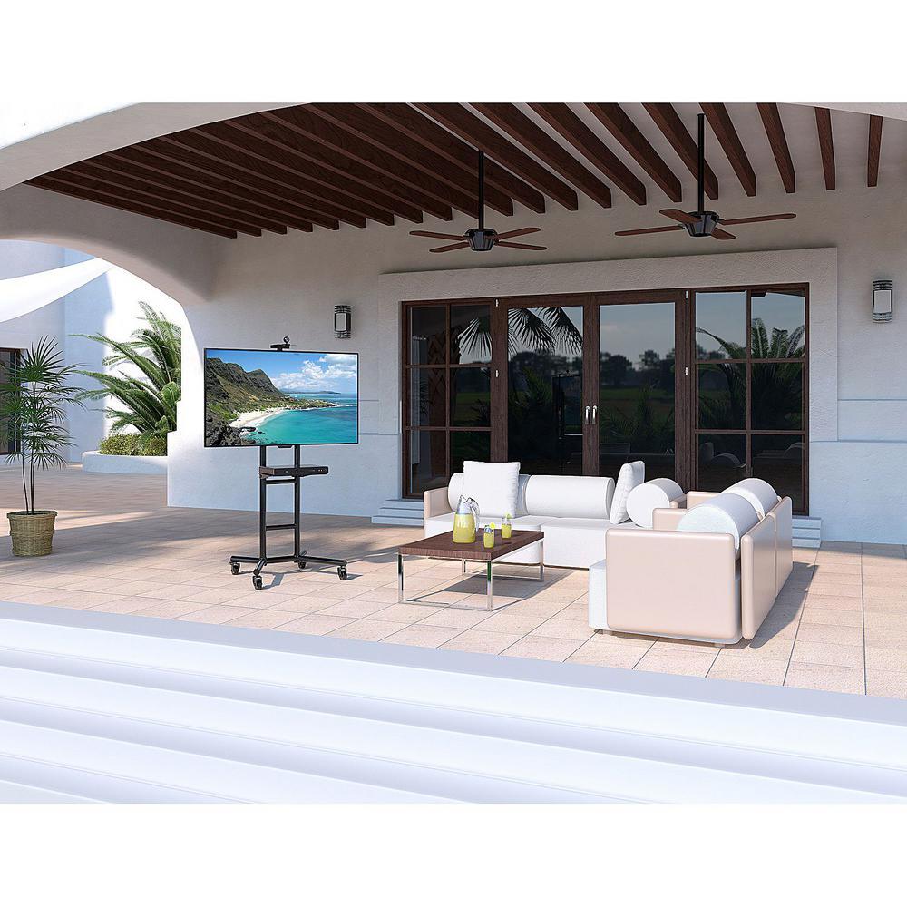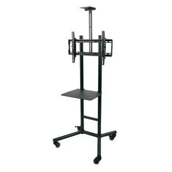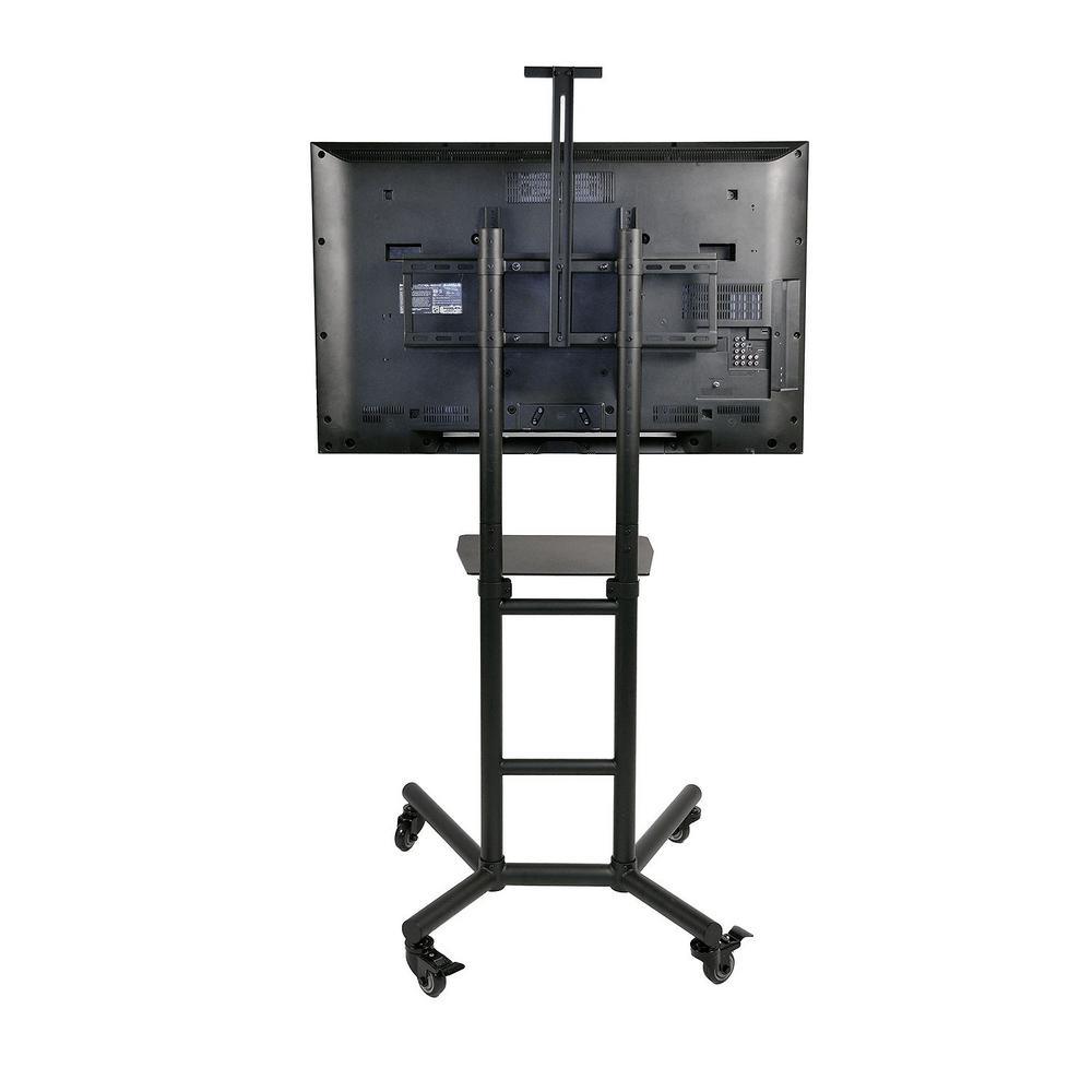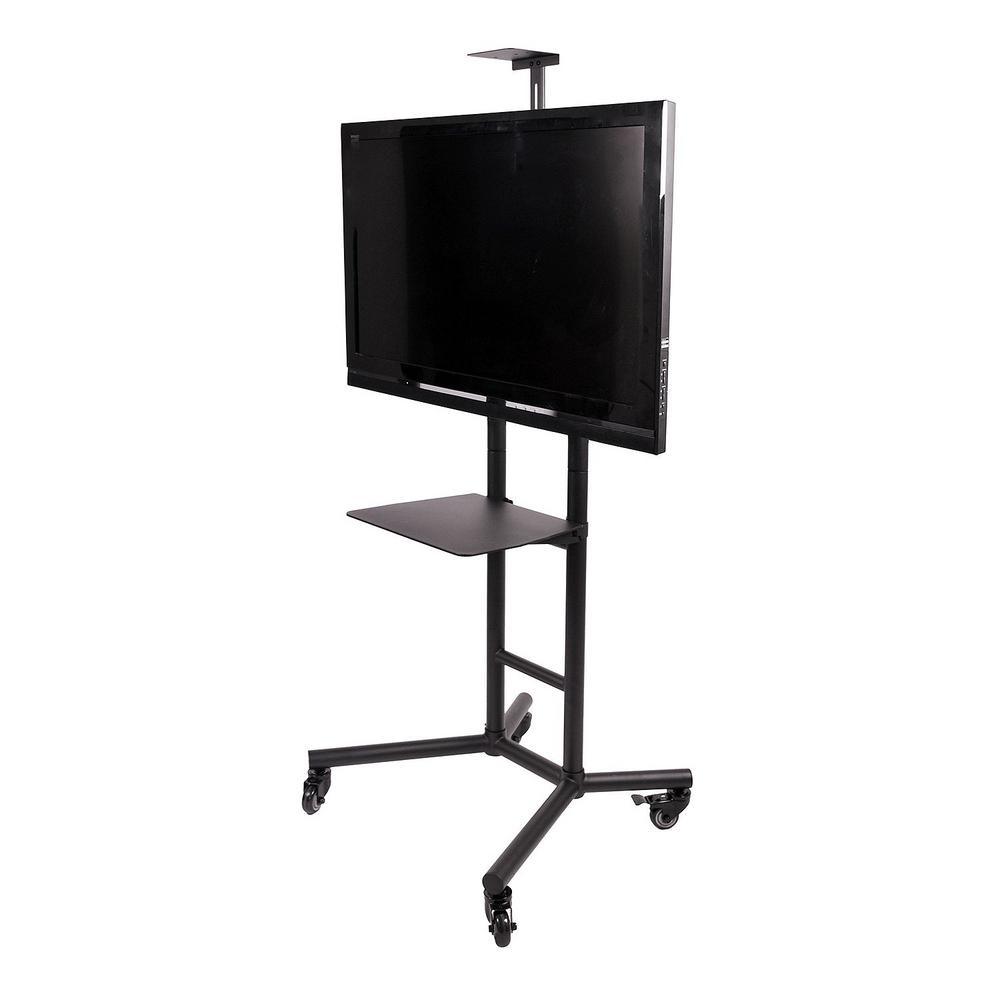 Big on multi-use, the Universal Mobile TV Cart provides effortless versatility at a moment's notice. This cool cart lets you orient your TV according to your viewing preferences. Mounting your flat screen TV is easy and the cart also fits curved screens. Once mounted, the cart can be rolled anywhere and the casters lock in place for stability. Whether you're sitting on a bar stool or gaming on the couch, you can adjust the height for your ideal viewing and entertainment experience. There's a handy shelf that's perfect for an AV component or game console. The tilt helps you adjust to any glare. Ideal for everything from home settings to tradeshows. The web camera mount makes it great for video conferencing.