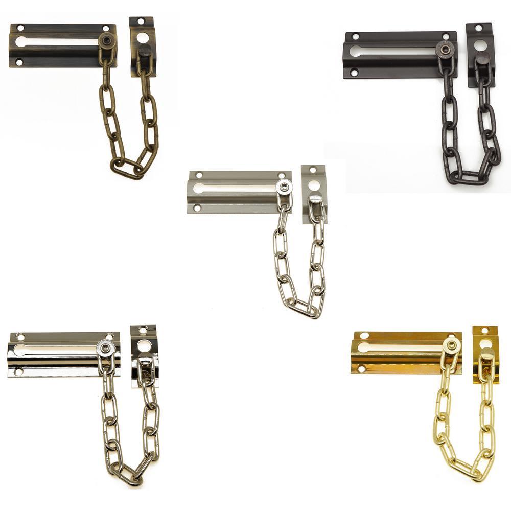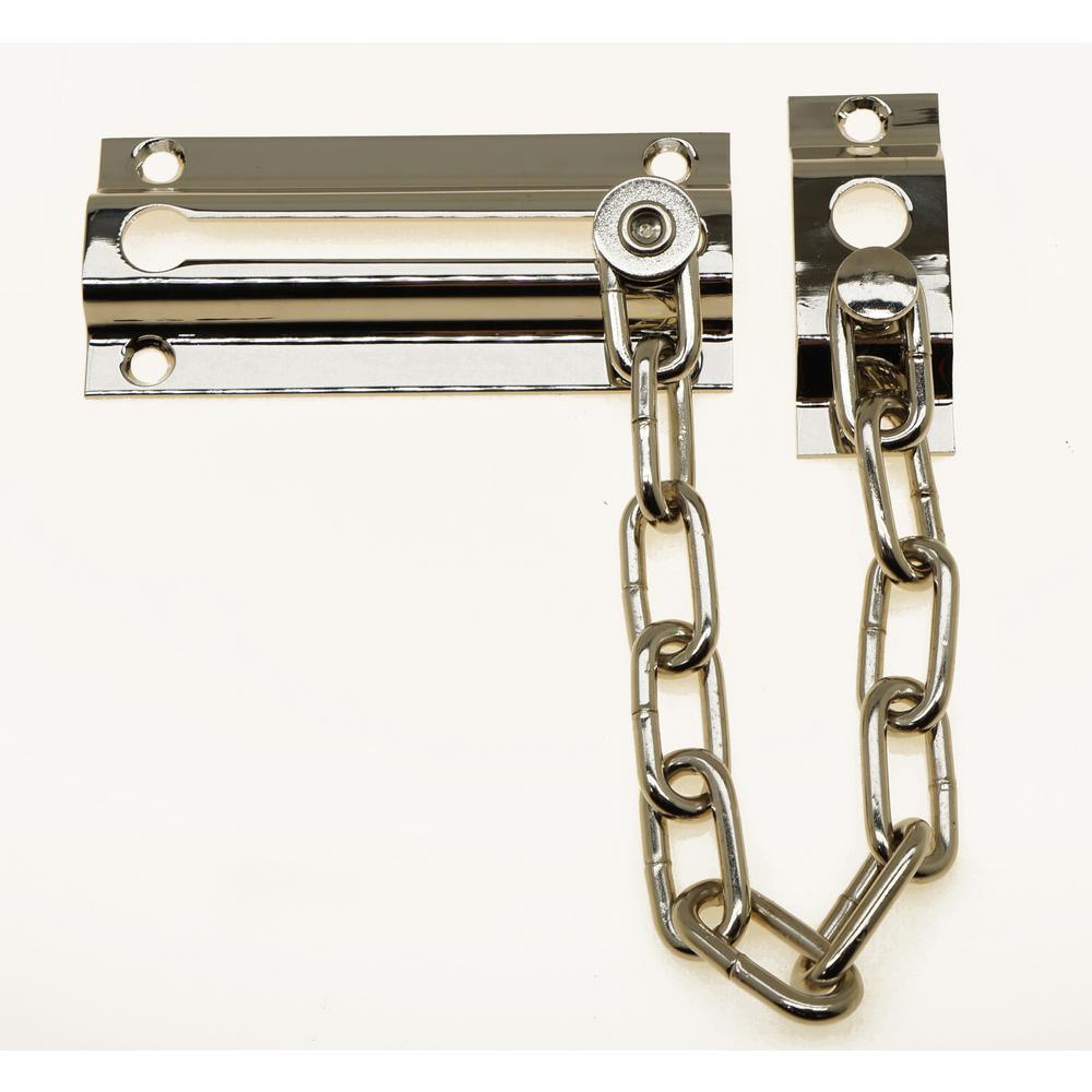 • 100% extruded solid brass chain guard comes with a strong, steel-welded chain of 8.5 in. L, which provides extra security by allowing the door to be partially opened for viewing and ventilation