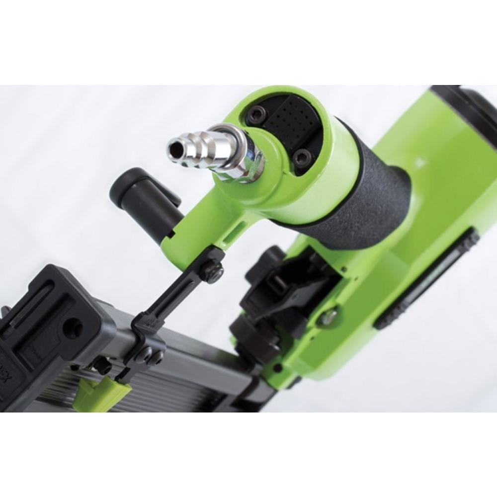 - Hardened steel nose piece is precision machined for accurate nail feeding