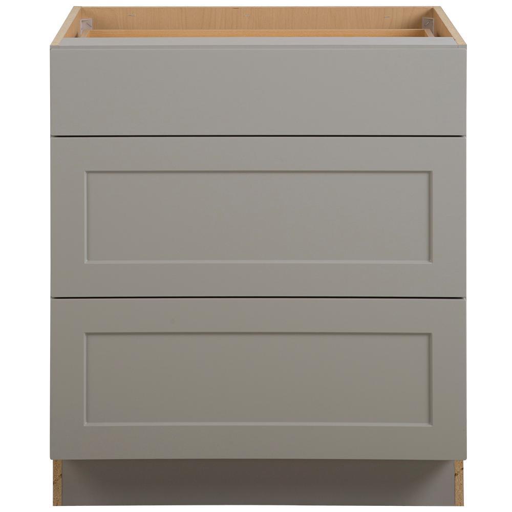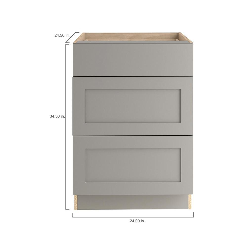 Edson Shaker Assembled 24x34.5x24 in. Base Cabinet with 3-Soft Close Drawers in Gray