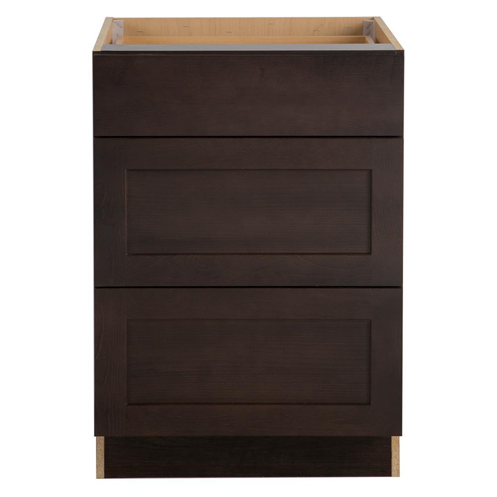 The Edson 24 in. W assembled base cabinet in Gray will withstand the test of time and is beautifully crafted with a slab drawer front and 2 shaker style drawers. The Edson collections Gray color offers a taupe-gray finish and laminated natural maple interior that is sure to produce a serene atmosphere. Including a full overlay door style, the base cabinet is fully assembled making it easy for you to build the kitchen, bathroom, laundry room, or office of your dreams.