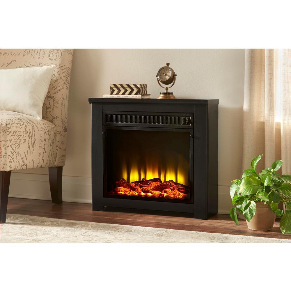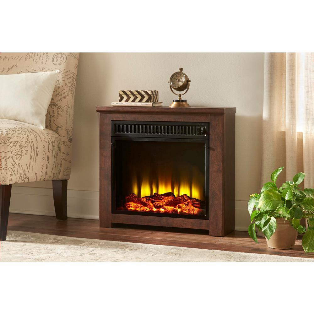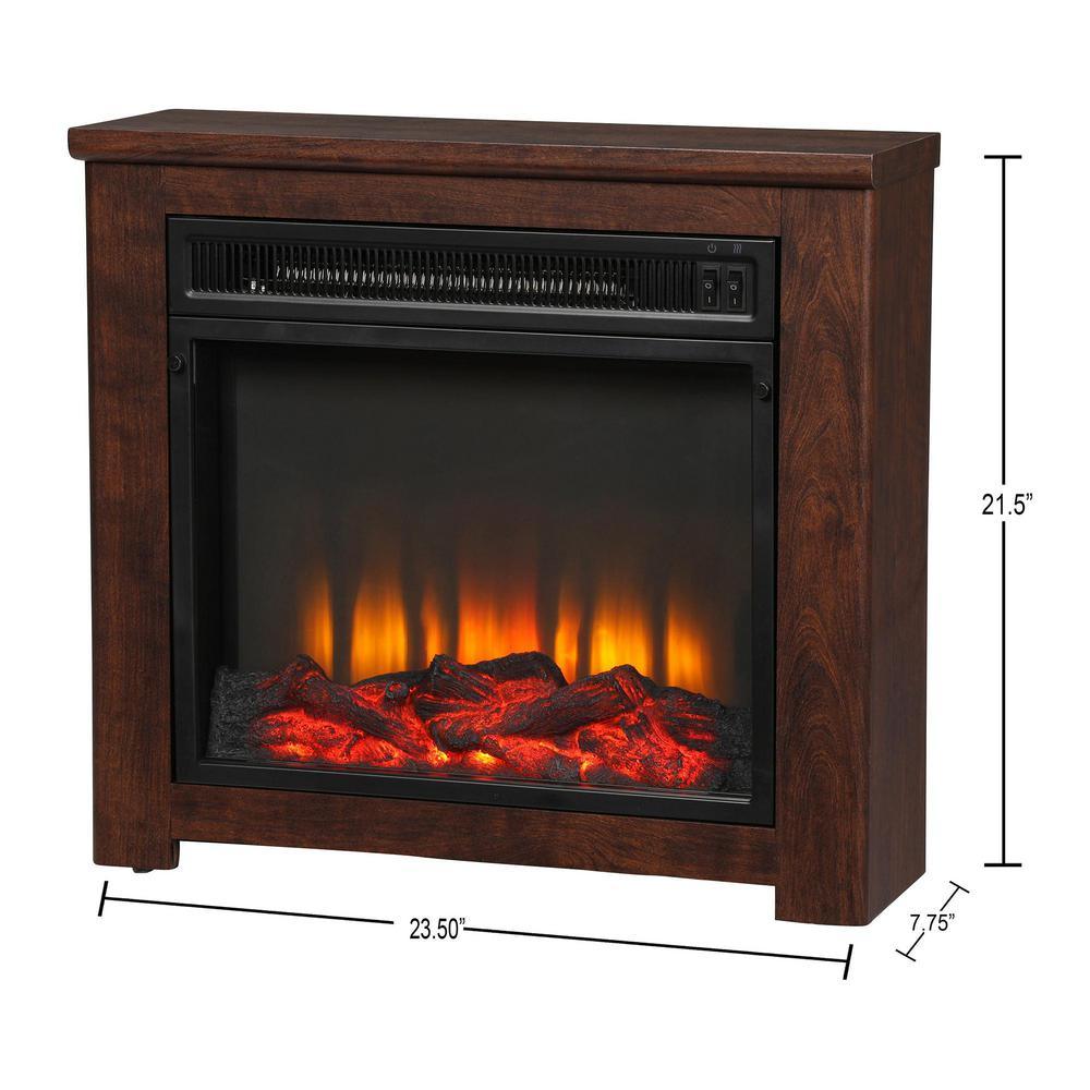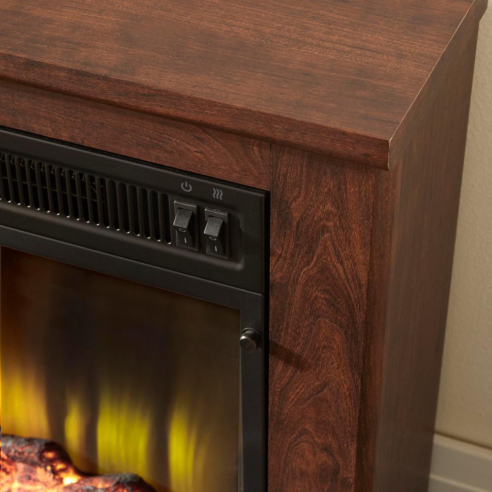 Enjoy the beauty of a fireplace in a small space with this Old Hickory Cherry wall mantel. Less than 8 in. D, this miniature mantle is perfect for smaller rooms. The 4,600 BTU electric fireplace provides a supplemental zone heating for up to 400 sq. ft., saving you money by allowing you to turn down your thermostat while staying toasty warm. Use the flame effect with or without the heater to have a cozy year-round fire, showcased behind a realistic log set and ember bed.
