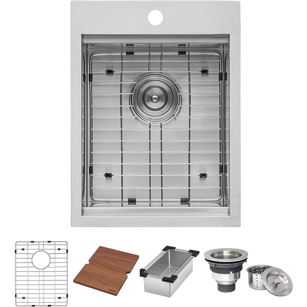 Workstation Drop-in Stainless Steel 15 in. x 20 in. Topmount Bar Prep RV Kitchen Sink 16-Gauge Single Bowl