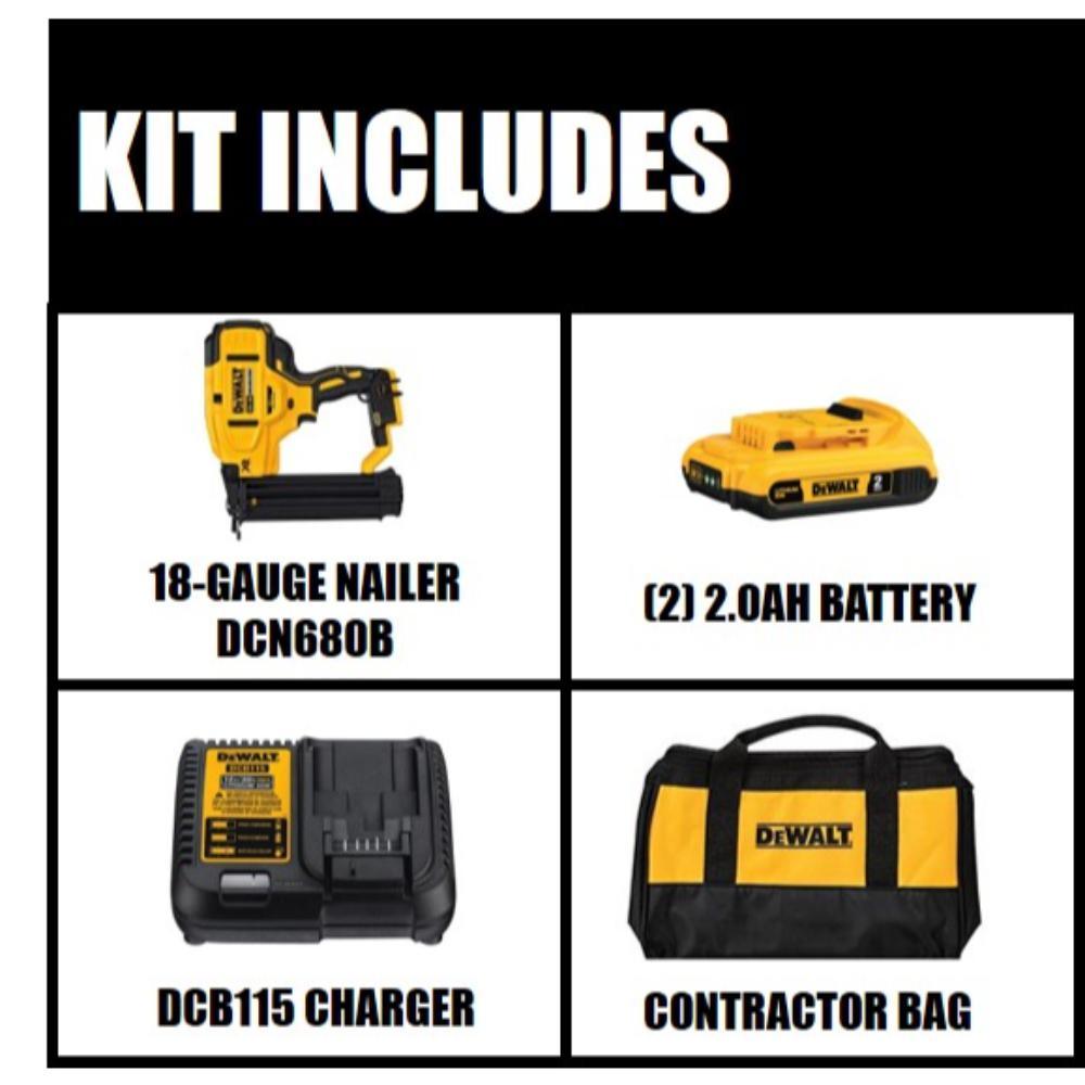 This 18-Gauge Brad Nailer Kit delivers the performance of a corded tool with the convenience of cordless. Driving brad nails from 5/8 to 2-1/8 in., this tool is perfect for fastening decorative molding, casing, kitchen crown and show molding. It is powered by a brushless motor and DEWALT 20-Volt MAX lithium-ion battery, and it is ready to tackle large and small jobs without the hassle of using gas, a compressor or a hose. Enjoy a tool-free depth adjustment for the precise countersinking of nails. This durable nailer includes multi-functional LED lights and a tool-free stall release level to quickly reset the driver blade in case it stalls.