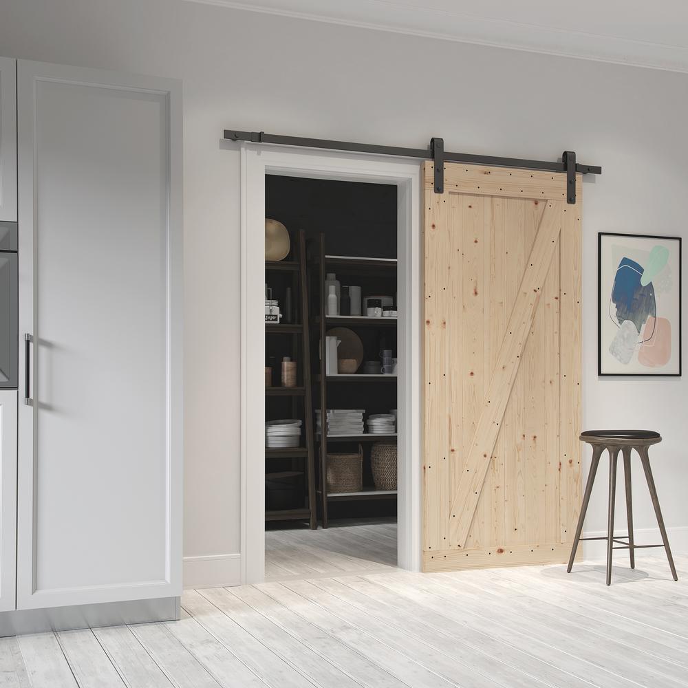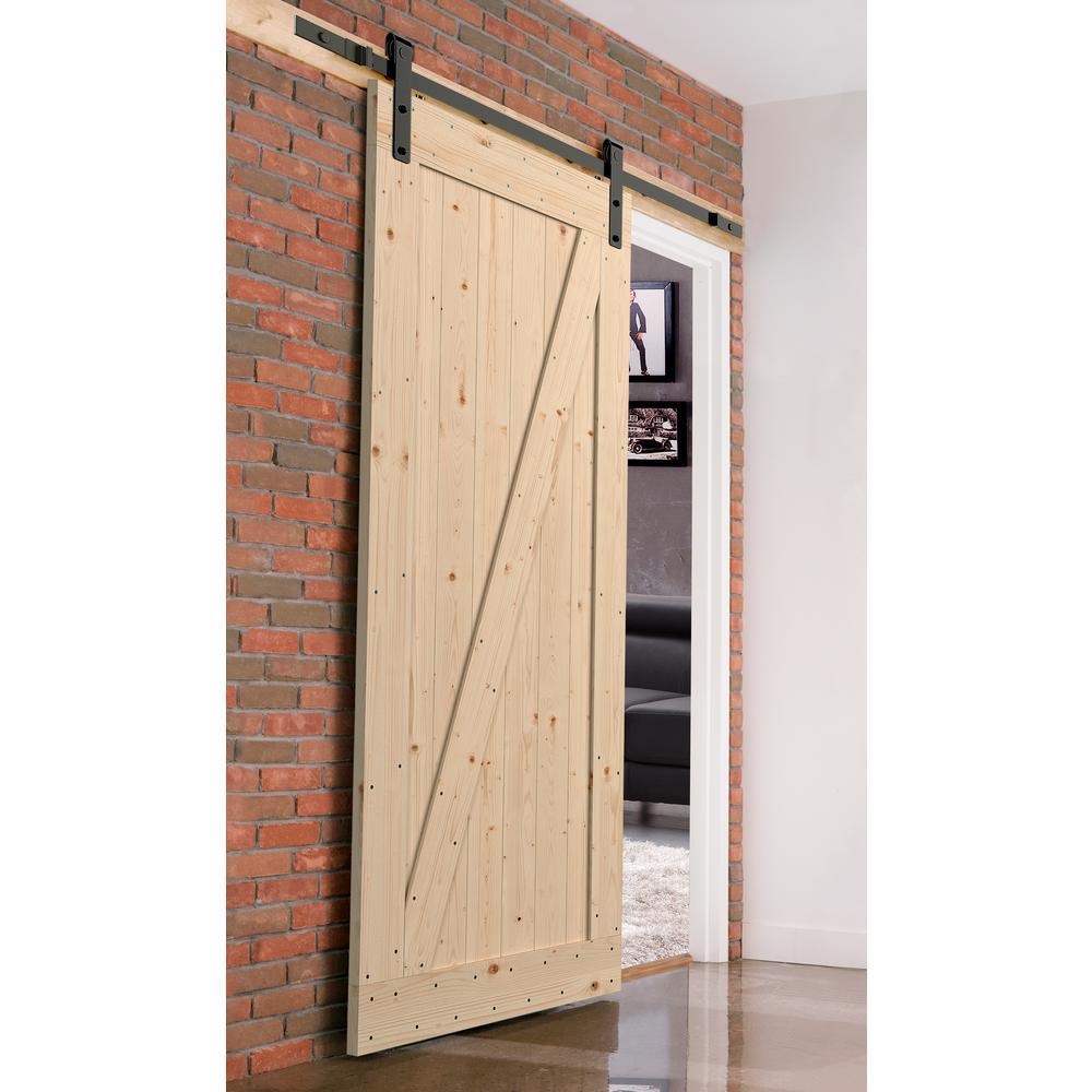 Upgrade your homes interior with this farm style sliding wooden door. The traditional frame with a diagonal brace and dark metal hardware will make your room look like something out of a magazine. Entirely made from quality Canadian Hemlock. This chic piece will be the highlight of your room for many years.