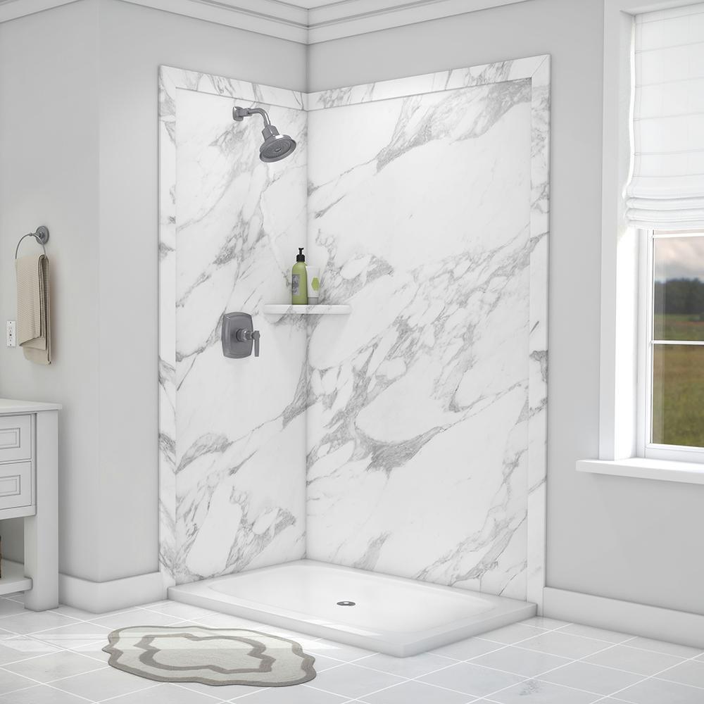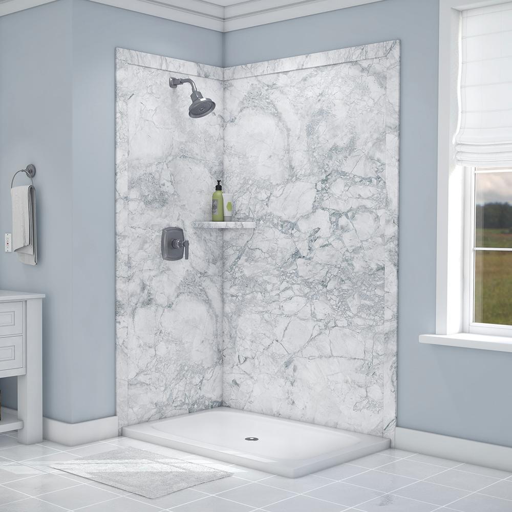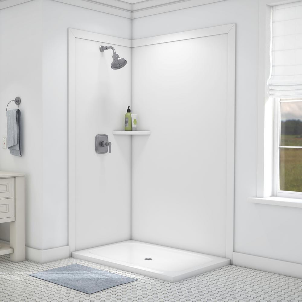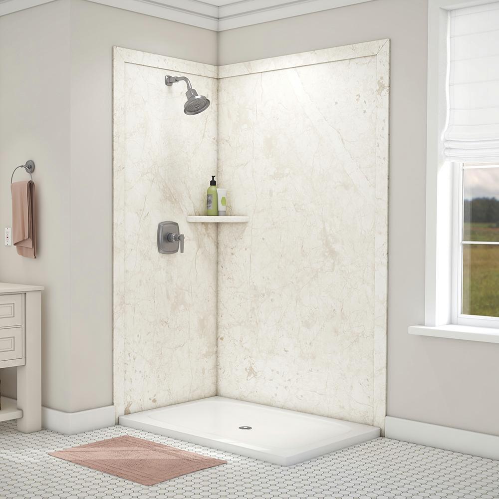 Elegance 36 in. x 48 in. x 80 in. 7-Piece Easy Up Adhesive Corner Shower Wall Surround in Triton