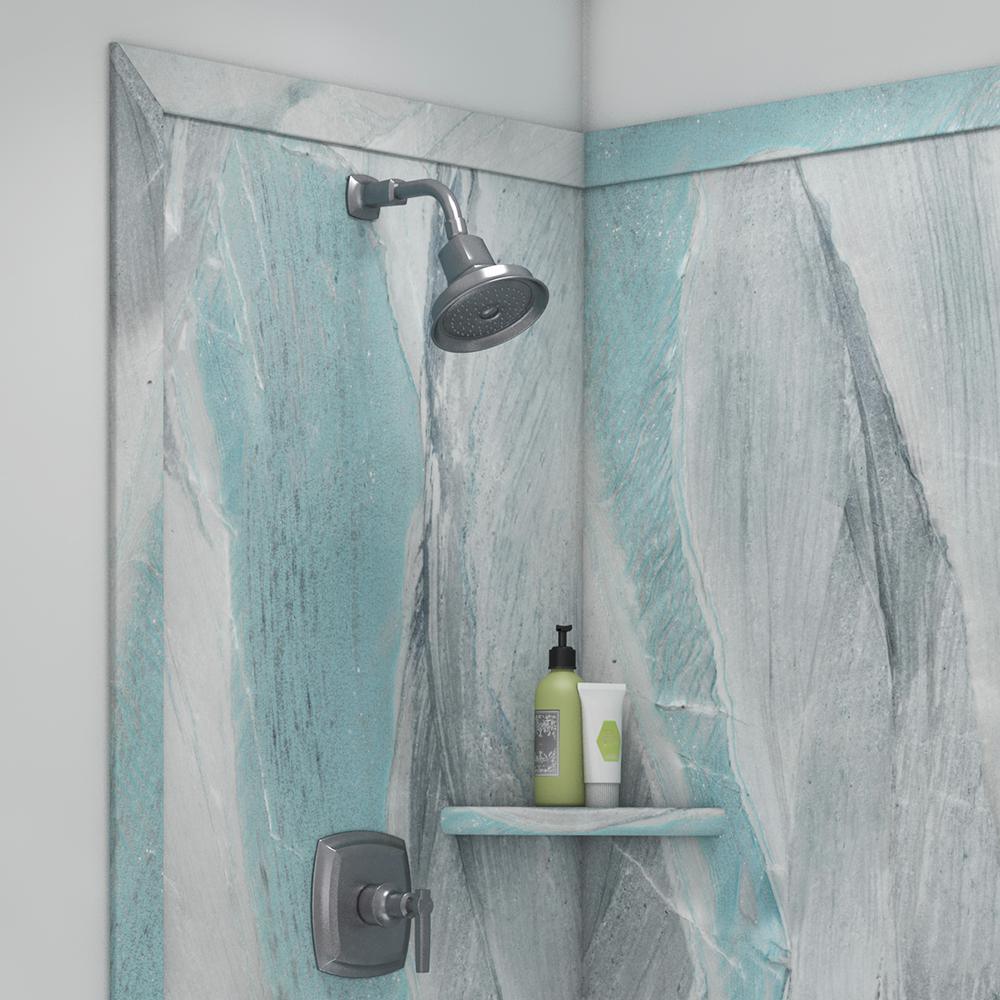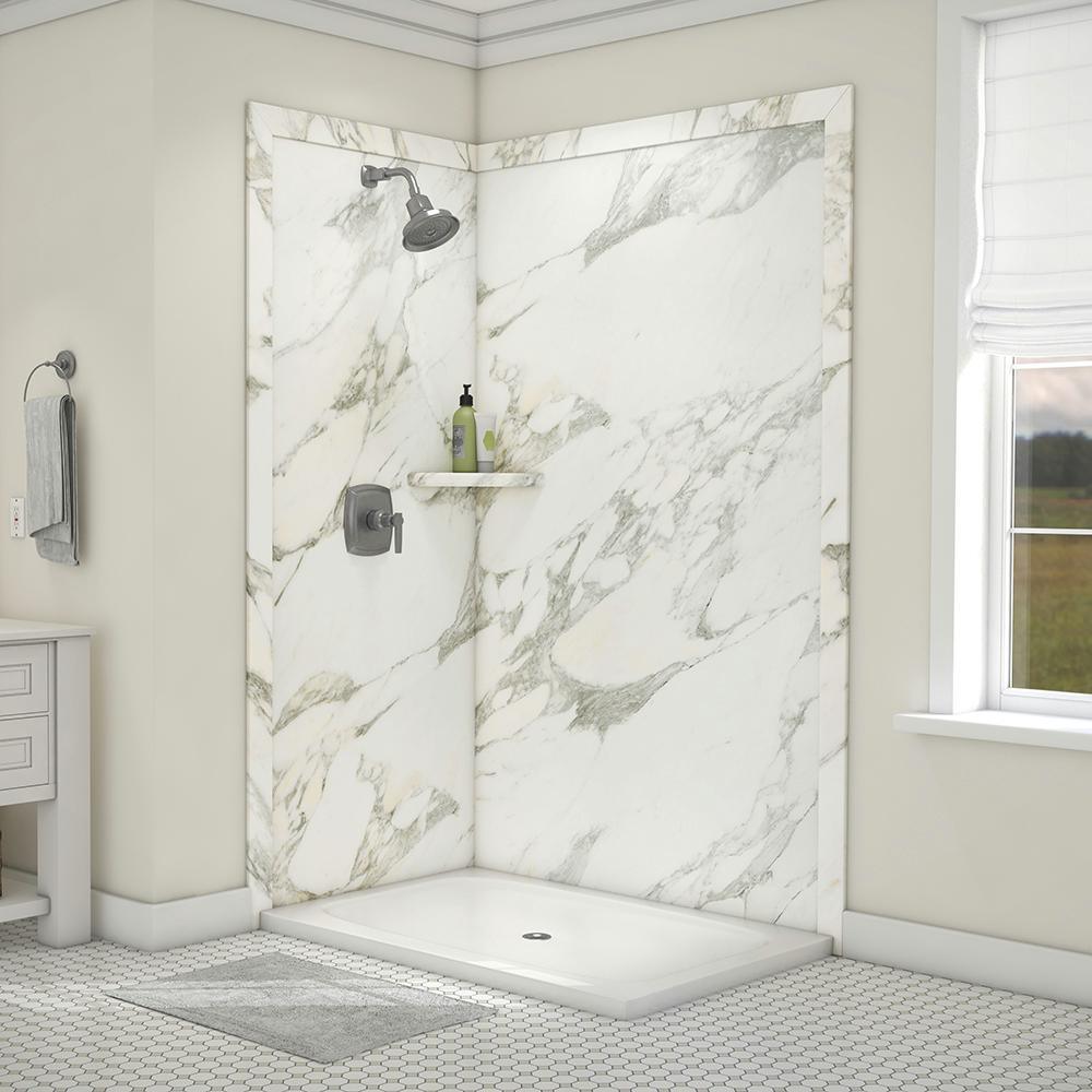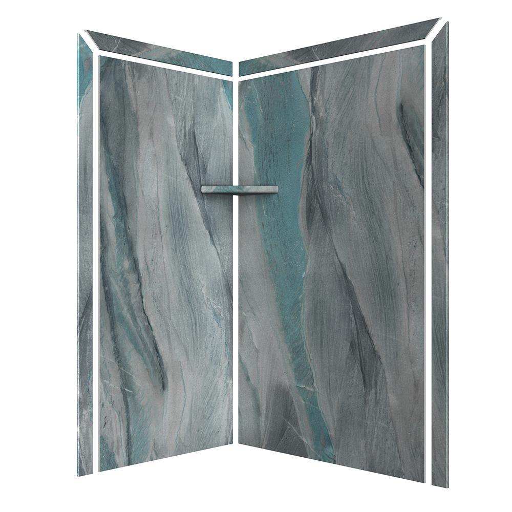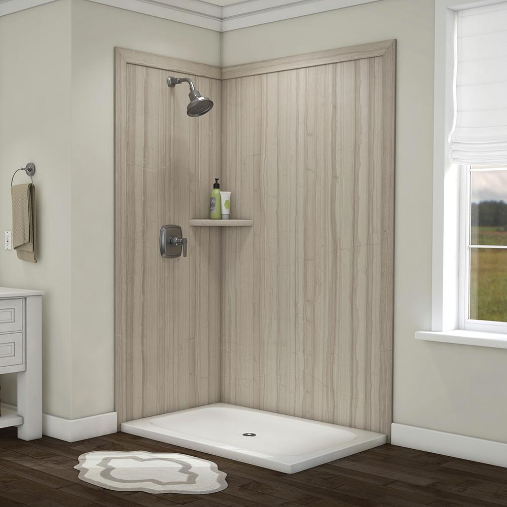Elegance 36 in. x 48 in. x 80 in. 7-Piece Easy Up Adhesive Corner Shower Wall Surround in Triton