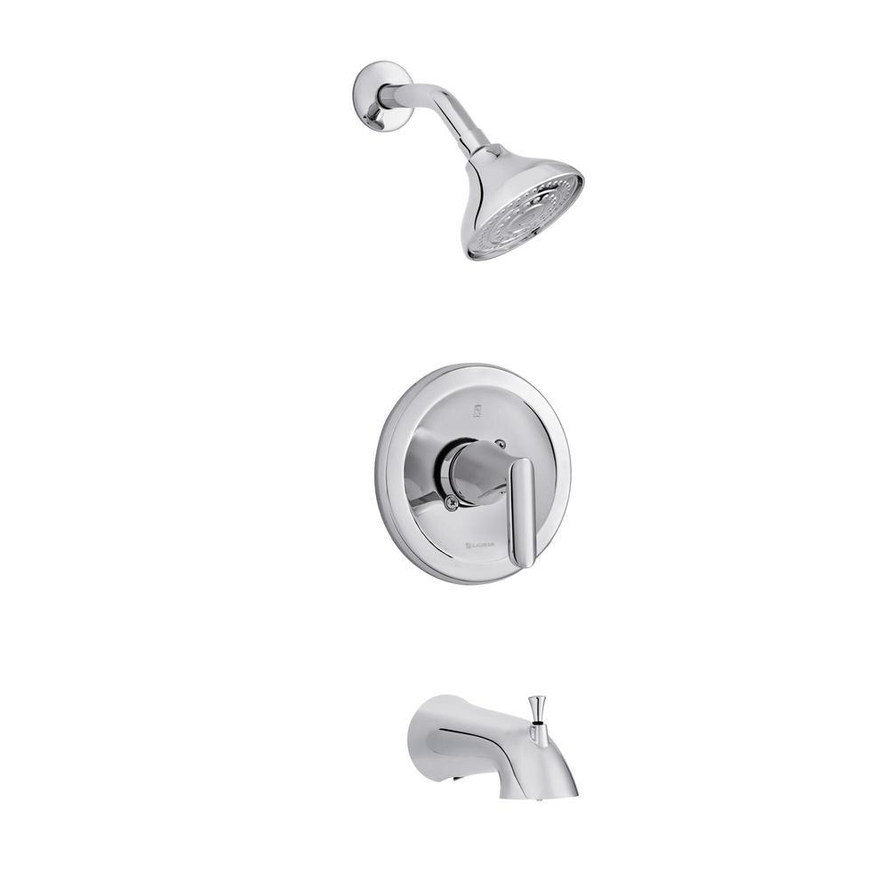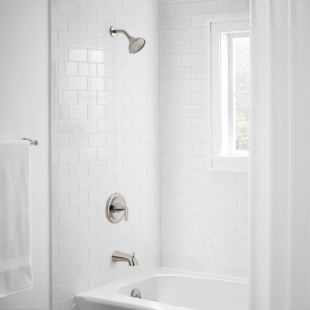 The Glacier Bay Jax Single-Handle 1-Spray Tub and Shower Faucet in Polished Nickel is an elegant transitional faucet that is sure to please. This faucet features a smooth ADA compliant lever handle and a ceramic disc valve to ensure drip-free operation. WaterSense certified with a 1.8 GPM flow rate, this faucet reduces water use without sacrificing performance. The durable finish and limited lifetime warranty makes this product a great choice for your bathroom.
