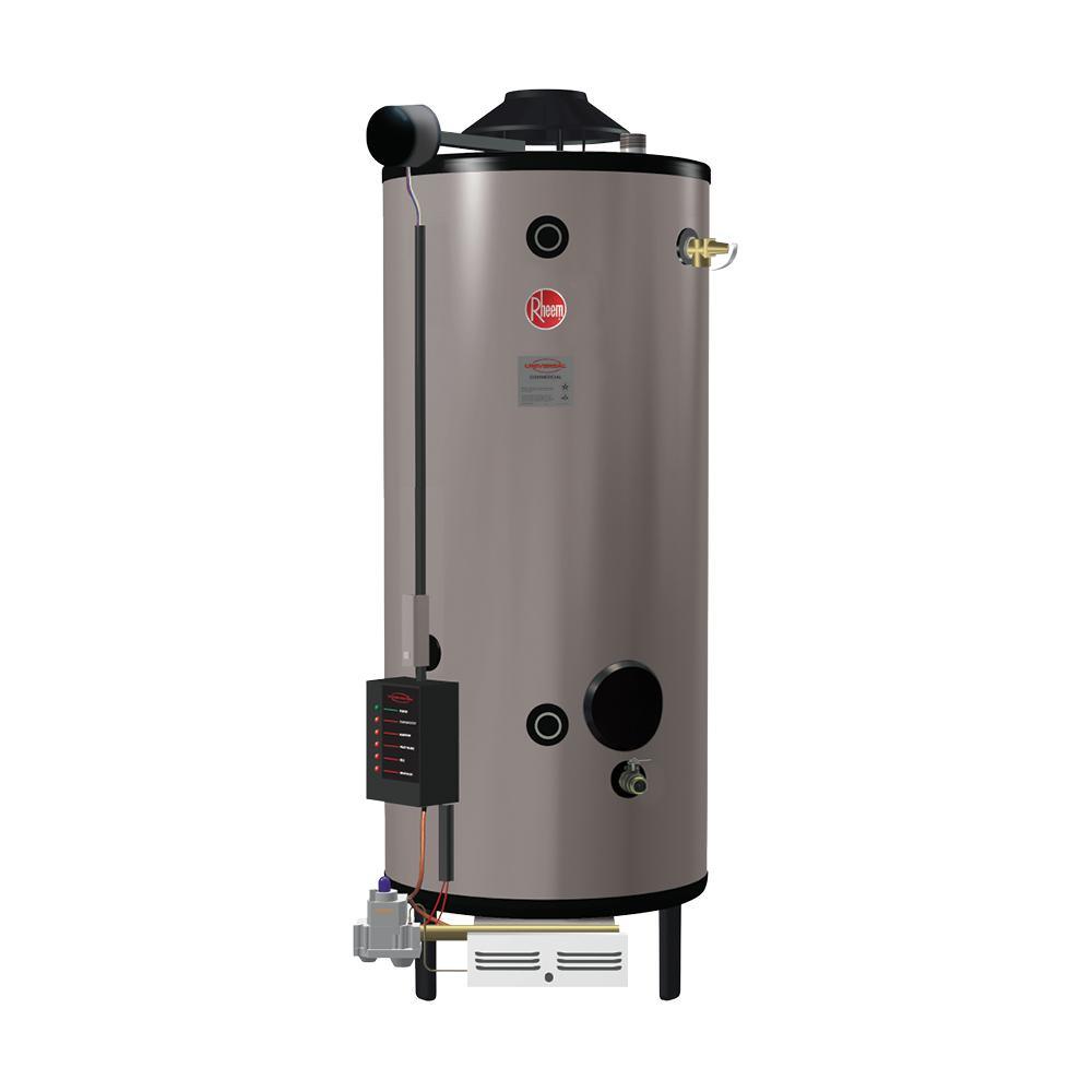 Rheem Commercial Universal Gas Water Heaters are designed to fit into tight retrofit applications and have the features and capacity to meet heavy duty demands. The tighter the commercial retrofit, the more you will appreciate how the Universal's compact size and multiple water connections simplify installations. Please Note: This model requires a 120-Volt power source.
