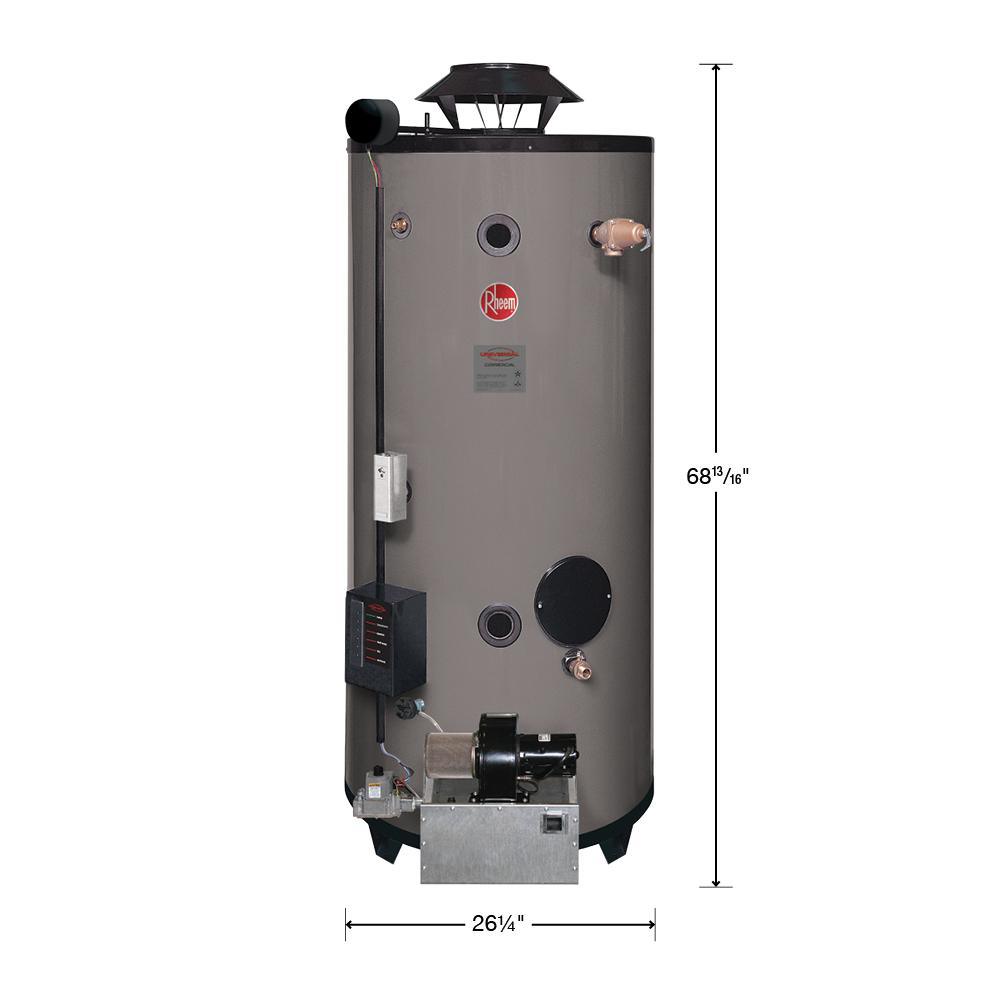 Rheem Commercial Universal Gas Water Heaters are designed to fit into tight retrofit applications and have the features and capacity to meet heavy duty demands. The tighter the commercial retrofit, the more you will appreciate how the Universal's compact size and multiple water connections simplify installations. Please Note: This model requires a 120-Volt power source.