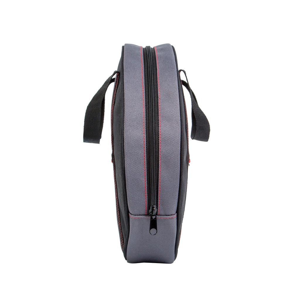 The PROLOCK PLB227 (93290) 14 in. 6-Pocket Tool Cord/Cable Bag is ideal for holding a wide variety of cables and cords from heavy-duty jumper cables, tow straps, and pneumatic hoses to extension cords and light audio cable. Constructed out of rugged 1200 denier polyester for maximum durability and abrasion resistance, this bag is ideal for keeping cords and cables organized and preventing tangling during storage and transport. This bag features 3 external slip pockets for storing small items like note pads, audio and electrical adapters, and other accessories in addition to 3 internal pockets for clamps, connectors, and more. To keep cords tightly wound the inside of the bag features 2 hook and loop secured webbing straps. A pair of double stitched webbing handles allow for easy portability.